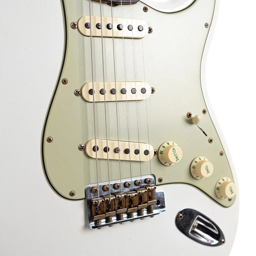 Fender Custom Shop, 1964 Stratocaster modelini, bu döneme özgü detayları ve ikonik değişiklikleri koruyarak özenle yeniden yarattı. El seçimi ton ağaçlarıyla hazırlanan bu model, iki parçalı kızılağaç gövde, çeyrek kesim akçaağaç sap ve yuvarlak laminasyonlu gülağacı klavye gibi dönem doğruluğuna sahip özellikler sunar. 1963 tarzı yumuşak "C" sap profili, 9.5 inç klavye yarıçapı ve 21 dar-yüksek perde ile çeşitli çalma stillerine rahatlıkla uyum sağlar. El yapımı ’64 manyetikler, vintage devre sistemi ve Tone-Saver devresi ile her volümde güçlü tonlar sunar. Vintage tarzı donanım ve Custom Shop senkronize tremolo, bu gitara hem estetik hem de işlevsellik katıyor.