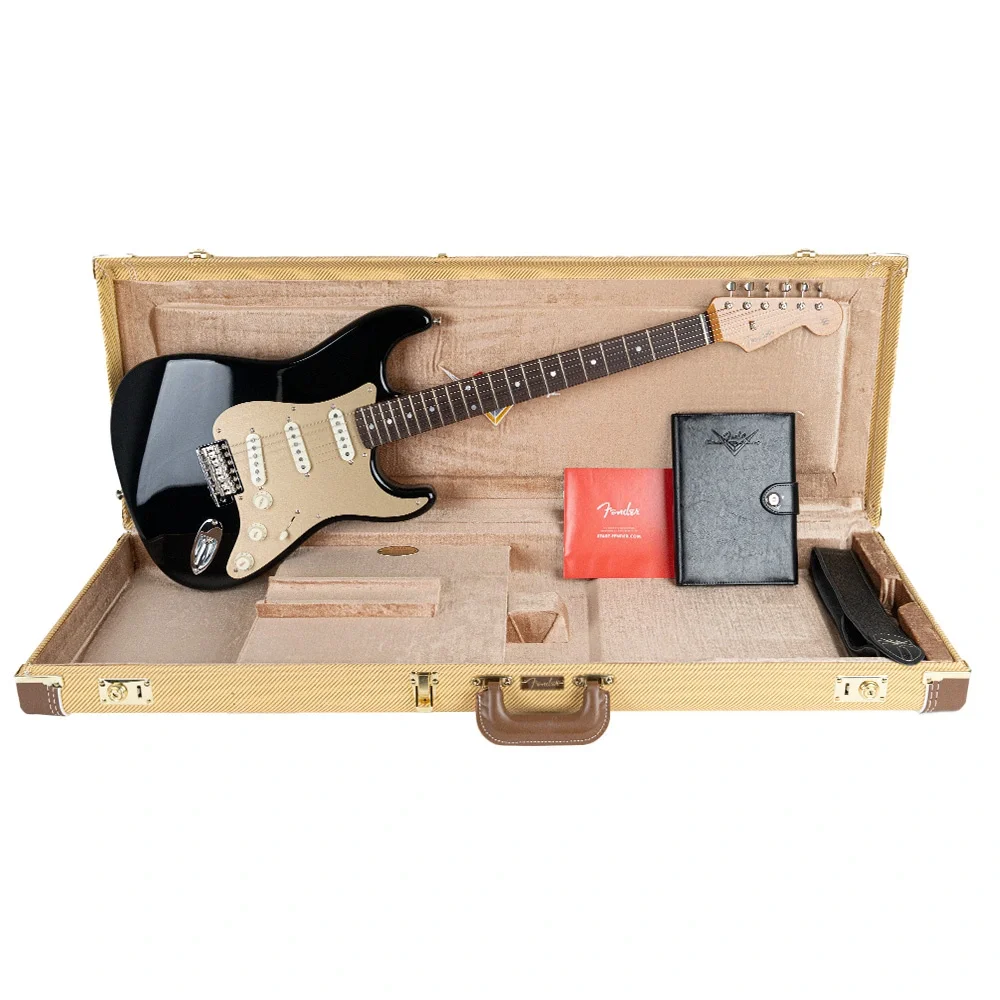 Nikel/krom donanım kaplaması, kemik eşik ve altın alüminyum pickguard gibi yüksek kaliteli detaylar, gitara benzersiz bir estetik katar. Modelle birlikte gelen hardshell case ve gitar askısı, hem güvenlik hem de kullanım kolaylığı sunar. Fender Custom Shop’un titiz el işçiliğiyle üretilen bu model, hem koleksiyon değeri taşıyan hem de sahnede veya stüdyoda üstün performans gösteren bir enstrümandır. Efsanevi Stratocaster tonunu modern ve benzersiz bir görünüme sahip bu gitarla keşfedin!