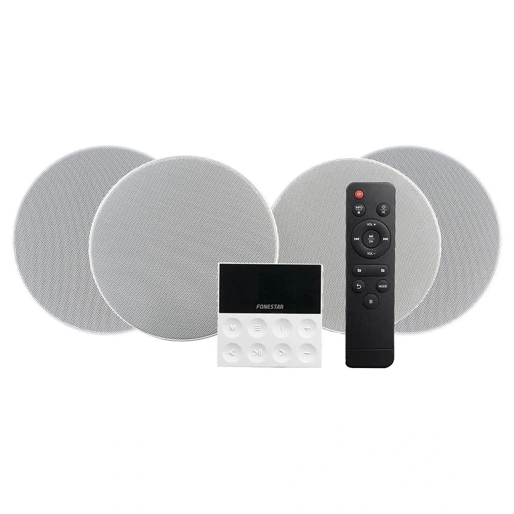 Fonestar KS-WALL4, ev ve ticari alanlar için özel olarak tasarlanmış, tümleşik bir tavan hoparlör ve duvar amplifikatör setidir. Modern beyaz tasarımı, estetik sadeliğiyle dekorasyonlara kolayca uyum sağlar.
