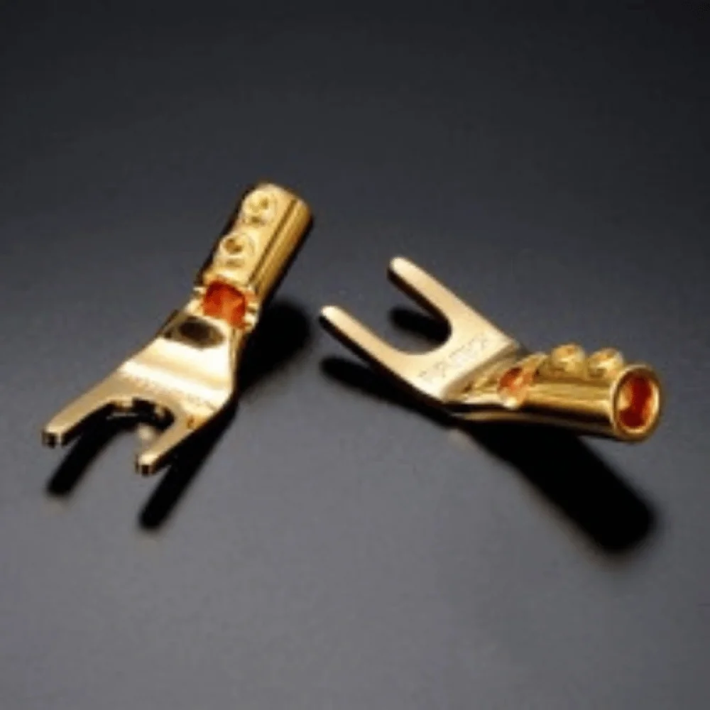 Yüksek performanslı ses spade terminalleri olan FP-201 (R)/(G), saf bakır α (Alfa) iletkenler kullanır. Vida bağlantısı veya lehimleme ile bağlantı imkanı sunar. 6 mm'ye kadar kablo çapları için uygundur. (R) modelinde rodyum kaplama, (G) modelinde ise 24 ayar altın kaplama bulunur.