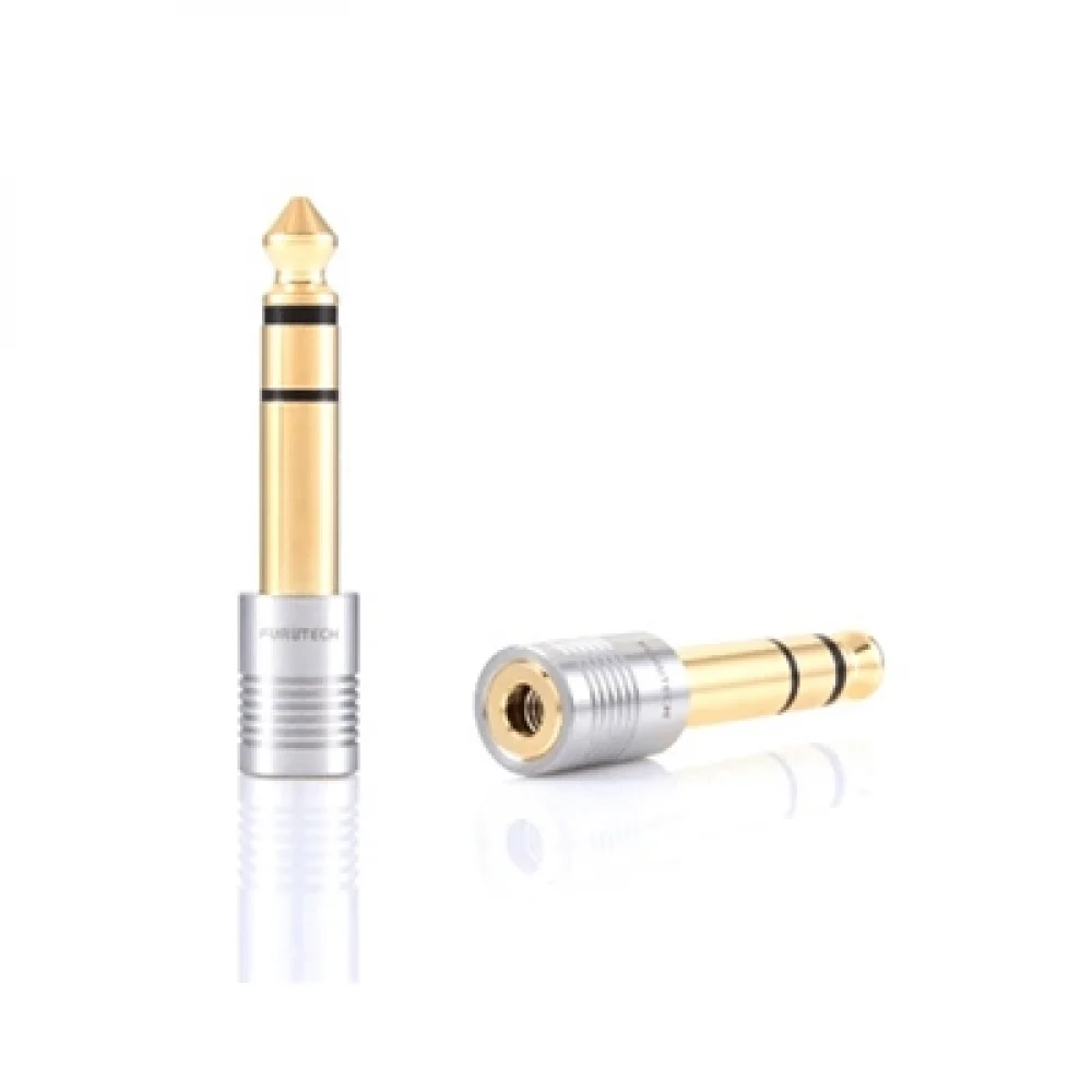 Yüksek performanslı evrensel 6.3 mm'den 3.5 mm'lik kulaklık fiş adaptörü. RoHS uyumlu rodyum kaplamalı veya altın kaplamalı α (Alfa) fosfor bronz ve bakır alaşımından yapılmış ana iletkenlere sahiptir. POM reçinesinden yapılmış izolasyon ve SUS 304 malzemeden yapılmış gövdesi ile sağlam ve dayanıklı bir yapıya sahiptir. Kompakt tasarımıyla taşınabilirlik sağlar.