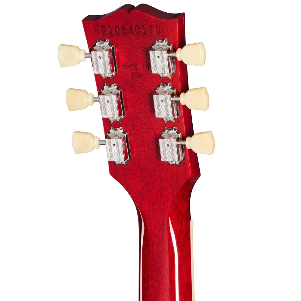 Gibson Les Paul Studio Cherry Sunburst, parlak nitroselüloz finişi, hafifletilmiş maun gövdesi ve Burstbucker Pro manyetikleriyle klasik Les Paul tonunu modern çalım konforuyla harmanlayan, sahne ve stüdyo dostu bir enstrüman. Cherry Sunburst rengi, gövdenin alt tonlarını ön plana çıkarırken zarif bir görsel sunum sağlar.