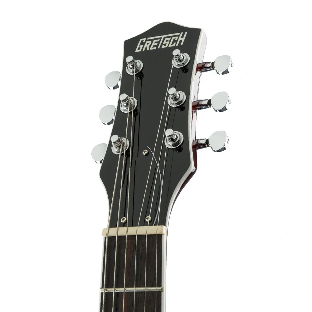 Güçlü bir ses profili ve olağanüstü akustik denge için akçaağaç üst kısım ile odacıklı maun gövdeZahmetsiz erişim ve performans için alt set maun sap22 orta jumbo perdeli 12" yarıçaplı defne klavyeÇift Black Top Broad'Tron™ manyetiklerTreble bleed devresine sahip ana volüm, ana ton ve bireysel manyetik ses seviyesi kontrolleriGretsch V-Stoptail tailpieceSabit Adjusto-Matic™ köprüKrom donanımGÖVDE Gövde AğacıMaunGövde CilasıParlakGövde ŞekliJet™SAP Sap AğacıMaunSap CilasıParlak ÜretanSap ŞekliThin "U"Tel Boyu24.6" (625 mm)Tuşe AğacıDefneTuşe Yarıçapı12" (305 mm)Perde Sayısı22Perde BoyutuOrta Boylu JumboÜst EşikSentetik KemikÜst Genişliği1.6875" (42.86 mm)Sap İşlemesiSedefli Büyük BloklarELEKTRONİK Köprü ManyetiğiBlack Top Broad’Tron™Sap ManyetiğiBlack Top Broad’Tron™KontrollerVolum 1. (Sap Manyetiği), Volum 2. (Köprü Manyetiği), Ana Volum (Treble Bleed ile), Ana TonManyetik Seçici3 Konumlu;
