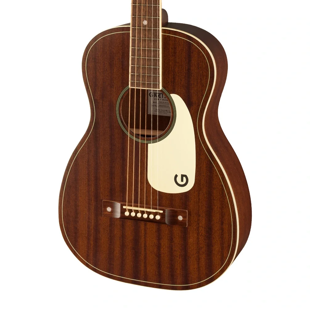 X-braced gövde, odunsu vintage ton ve güvenilir dayanıklılığın optimum dengesi için seçkin hafif laminat ton ağaçları ile üretilirken, "C" şeklindeki sap, saatlerce eski zaman ilhamı için davetkar bir his sunar. Vintage tarzı iğneli köprü, "G"-grafikli pickguard, boyalı pinstripe purfling, 3-on-a-plate açık dişli akort burguları ve büyük boy nokta klavye işlemeleri gibi döneme uygun detaylar, herhangi bir barnburner veya jamboree için nostaljik bir kişilik için bir araya geliyor.