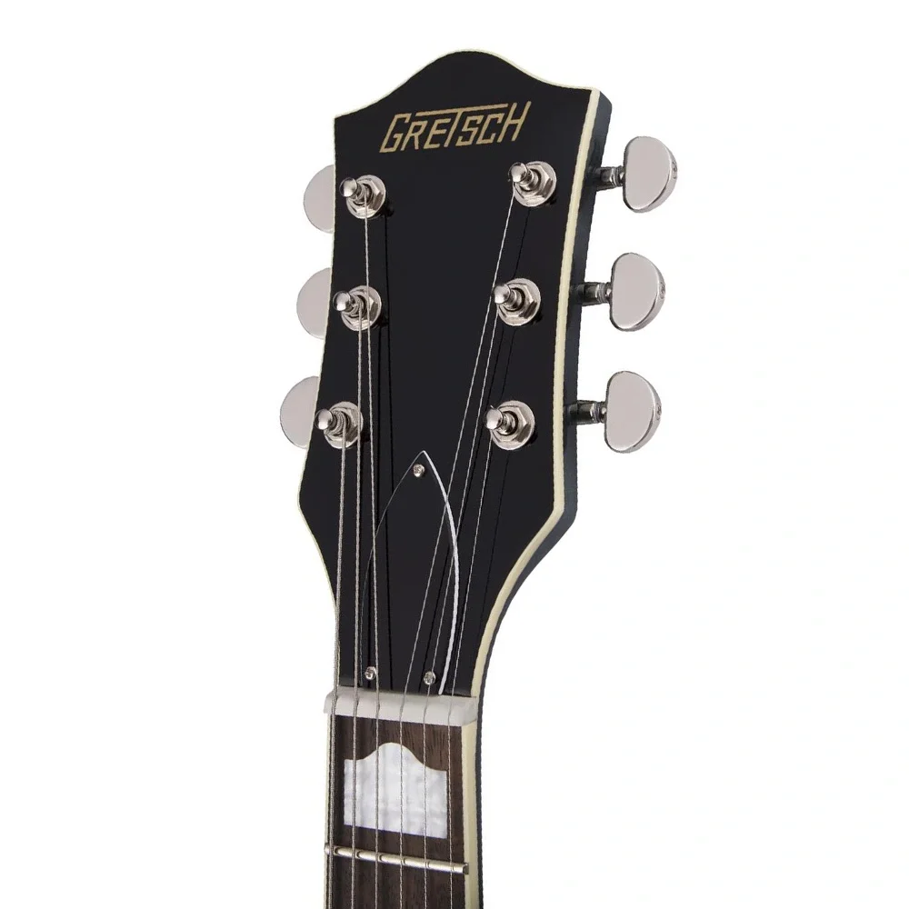 Gretsch'ten beklediğiniz tüm klasik göz alıcı stil burada; vintage tarzı siyah kontrol düğmeleri, daha fazla akustik projeksiyon için genişletilmiş F delikleri, yükseltilmiş purfling ile zarif eskitilmiş beyaz ciltleme, kaygan görünümlü nikel donanım, kemerli lamine akçaağaç yapı ve üç katlı tortoiseshell pickguard. Bir kez elinize alıp çalmaya başladığınızda bırakmanız neredeyse imkansız olan G2420T, Gretsch'ten beklediğiniz klasik ses ve stilin şaşırtıcı bir yorumudur.