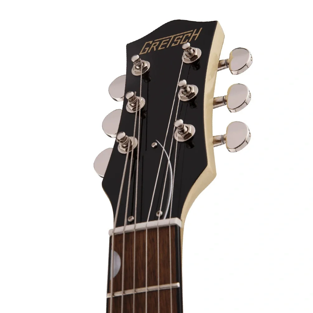 Ayrıca G2210 sabit ve dengelenmiş sarma köprü, sentetik kemik somun, bağlı sap, vintage tarzı kontrol düğmeleri, tortoise pickguard ve nikel donanıma sahiptir.
