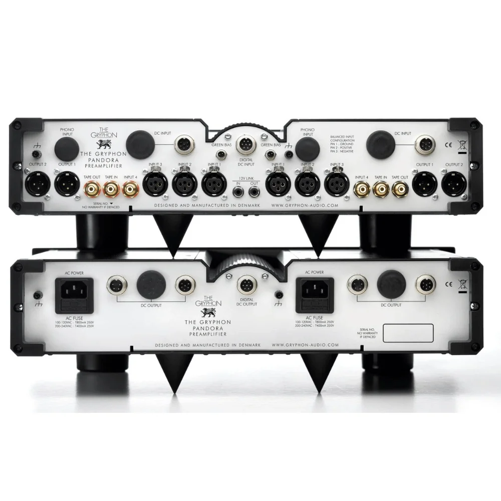 Gryphon Pandora, sol ve sağ kanalları ayrı şasilerde tamamen izole ederek ve her bir şasi için özel çift mono güç kaynaklarıyla, ses sinyalini herhangi bir parazitten korumak için bu erdemleri dört şasili bir ön yükselticide yakalamıştır. Tasarımın çift mono yönü, her kanal için ayrı çıkarılabilir güç kabloları ve ayrı güç anahtarlarıyla pratik olarak aşırıya taşır.