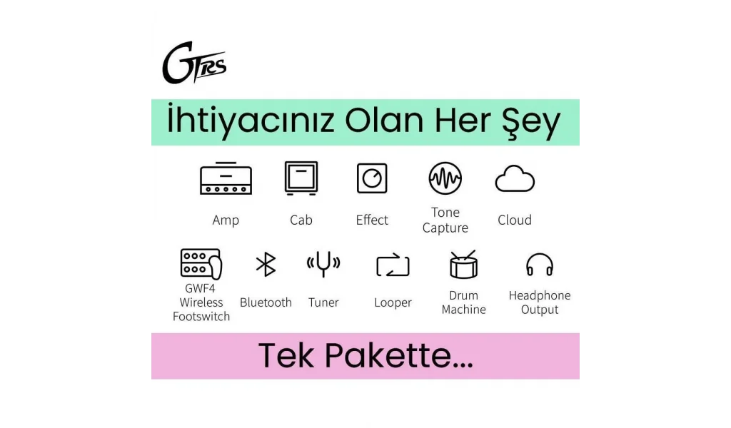 GTRS elektro gitar fiyatları kendinden efekt işlemcili ve cep telefonu uygulaması, taşıma çantası ve efekt kontrol pedalı hediyeli