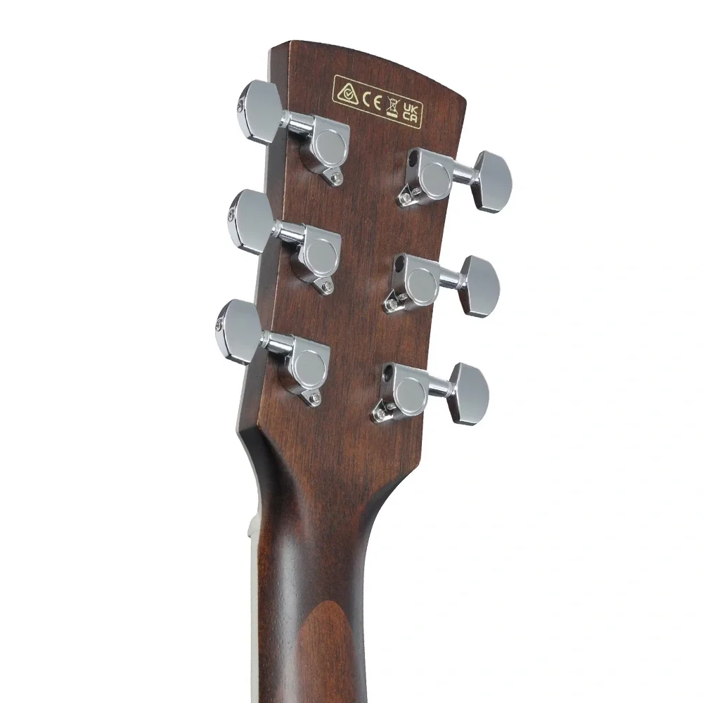 Okoume arka ve yanlar, gitar yumuşak bir şekilde çalındığında veya parmakla vurulduğunda odunsu, sıcak bir ton üretir ve tıngırdatıldığında güçlü, yüksek orta tonlar sağlar.