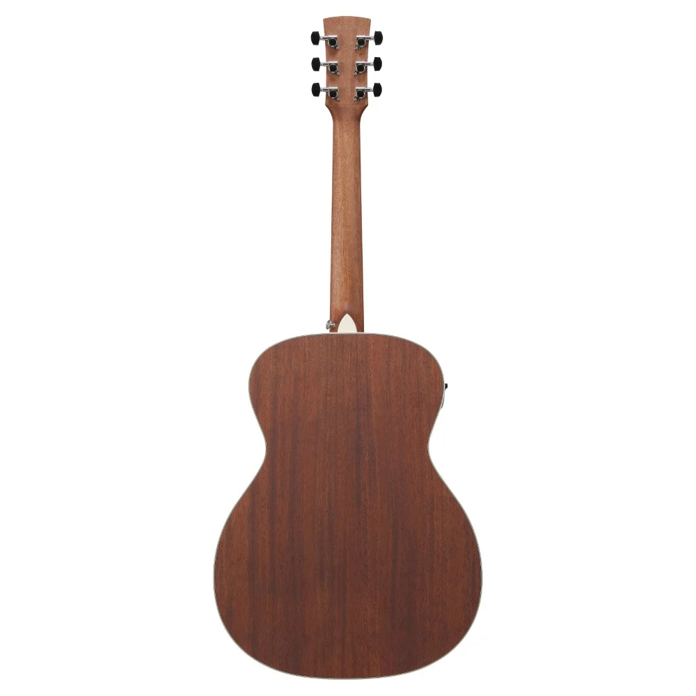 Masif African mahogany üst kapak, gitarın en belirgin karakterini oluşturarak sıcak, dolgun ve mid frekans ağırlıklı bir ton üretir. Aynı ağaçtan üretilmiş arka ve yanlar, bu ton karakterini destekleyerek bütünlüklü ve doğal bir akustik yapı sunar. Bu kombinasyon özellikle fingerstyle, akustik pop ve blues tarzlarında son derece başarılı sonuçlar verir. Zamanla açılan masif üst kapak, kullanım arttıkça daha zengin ve rezonanslı bir ton sunar.