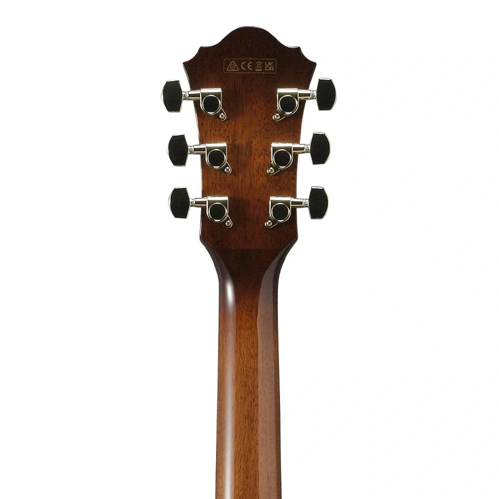 Ibanez AE340FMH, sadece etkileyici sesiyle değil, aynı zamanda çalınabilirliği ön planda tutan tasarımıyla da dikkat çekiyor. Modern kesikli (cutaway) AE gövde şekli, klavyenin üst eşiklerine kolay erişim sağlayarak daha özgür bir çalma deneyimi sunuyor. Yuvarlatılmış klavye kenarları ise uzun süreli çalımlarda bile konforu en üst düzeye çıkarıyor. Bu ergonomik detaylar, AE340FMH'yi hem sahne performansları hem de evdeki pratik seansları için ideal bir yol arkadaşı haline getiriyor.
