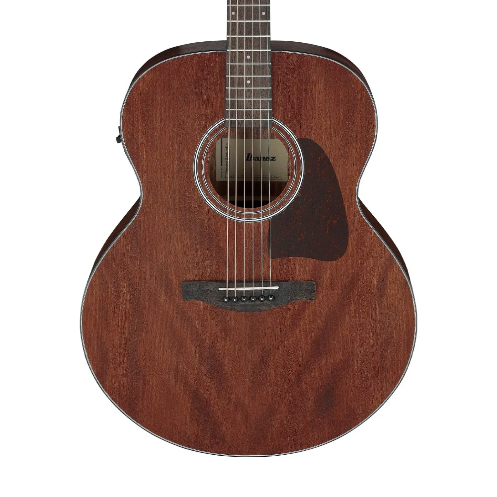 Ibanez AJ54E-OPN, üst kapak, arka ve yanlarında kullanılan lamine okoume ağacıyla sıcak ve etkileyici bir ses sunar. Bu ağaç yapısı, belirgin mid ve tiz frekanslarla birlikte duygulu bir ton karakteri kazandırır. Geniş jumbo gövde tasarımı ise güçlü bir bas projeksiyonu sağlayarak sesin doluluğunu artırır. Gövde üzerindeki açık gözenekli (open-pore) cila, hem doğal rezonansı öne çıkarır hem de tona derinlik kazandırır. Yumuşak fingerpicking pasajlarından güçlü ritim vuruşlarına kadar her tarz için çok yönlü bir ses sunar