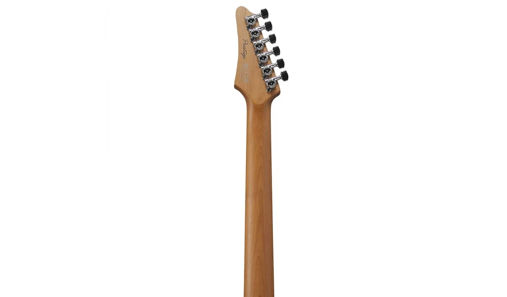 Seri Prestige (Japonya üretimi) Gövde Alder (Kavak), parlak polyester cilalı Sap S-TECH WOOD® Roasted Maple, AZ Oval C profilli, yağlı yüzey Klavye S-TECH WOOD® Roasted Maple, 305 mm yarıçap, siyah nokta işaretlemeler Perde 22 adet jumbo paslanmaz çelik perde, Prestige fret edge işçiliği Skala Uzunluğu 648 mm / 25.5" Sap Genişliği 42 mm (üst eşik), 56.4 mm (22. perde) Sap Kalınlığı 20.5 mm (1. perde), 22.5 mm (12. perde) Üst Eşik Kemik (Bone) Yan Nokta İşaretleri Luminlay (karanlıkta parlayan) Köprü Gotoh® T1802 tremolo, titanyum eyerler ve çelik tremolo bloğu Burgular Gotoh® Magnum Lock w/H.A.P. kilitli, yükseklik ayarlanabilir Manyetikler (Sap) Seymour Duncan® Hyperion™ (S) Manyetikler (Orta) Seymour Duncan® Hyperion™ (S) Manyetikler (Köprü) Seymour Duncan® Hyperion™ (H) Elektronik dyna-MIX9 sistemi ve Alter Switch ile 9 farklı kombinasyon Kontroller 1 x Volume, 1 x Tone, 5 yönlü seçici ve mini Alter Switch Tel Takımı D’Addario® EXL110 (.010–.046) Donanım Rengi Krom Super All Access Neck Joint Yüksek perdelere kolay erişim sağlar Ergonomik Konturlar Otururken veya ayakta çalarken konfor sağlar Luminlay Noktalar Karanlık sahnelerde yön bulmayı kolaylaştırır Taşıma Çantası Özel sert kılıf (hardshell case) dahildir