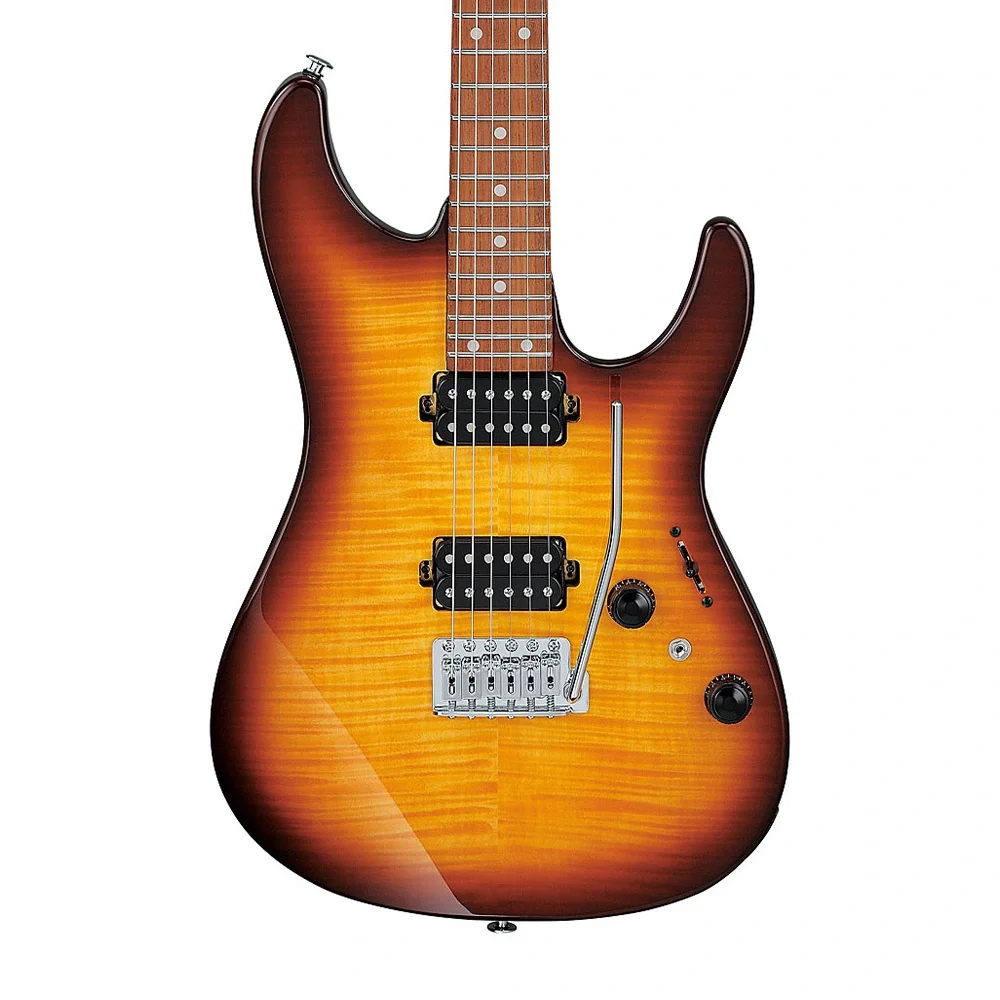 Gitarın kilitli akort burguları (locking tuners), hızlı ve hassas akort yapmanızı sağlarken akort stabilitesini maksimum seviyeye çıkarır. T106 tremolo köprüsü, 6 bağımsız eşik tasarımıyla her telin yüksekliği ve entonasyonu hassas bir şekilde ayarlanabilir, böylece mükemmel bir çalım deneyimi sunar. Ibanez AZ24S1F-VLS Violin Sunburst ile ton çeşitliliğini keşfedin, üst düzey konforla çalmaya başlayın!