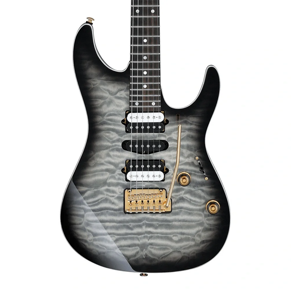 GÖVDE Gövde AğacıAmerikan Ihlamurağacı, Üst AkçaağaçGövde ŞekliSolid BodySAP Sap AğacıAkçaağaçSap ŞekliAZ Oval CTel Boyu25,5" (648 mm)Tuşe AğacıAbanozTuşe Yarıçapı12" (305 mm)Perde Sayısı24Perde BoyutuJumboÜst EşikGraph Tech®Üst Genişliği1,65" (42 mm)Sap İşlemesiSedefli NoktalarELEKTRONİK Köprü ManyetiğiDiMarzio® The Tone Zone® (H) bridge pickup Passive/AlnicoOrta ManyetikDiMarzio® True Velvet™ (S) middle pickupPassive/AlnicoSap ManyetiğiDiMarzio® Air Norton™ (H) neck pickupPassive/AlnicoKontrollerVolum, TonManyetik Seçici5 KonumluManyetik KonfigürasyonuHSHAKSAMLAR KöprüGotoh® T1502KaplamaAltınBurgularGotoh® MG-TTellerD'Addario EXL110 (.010 - .046)