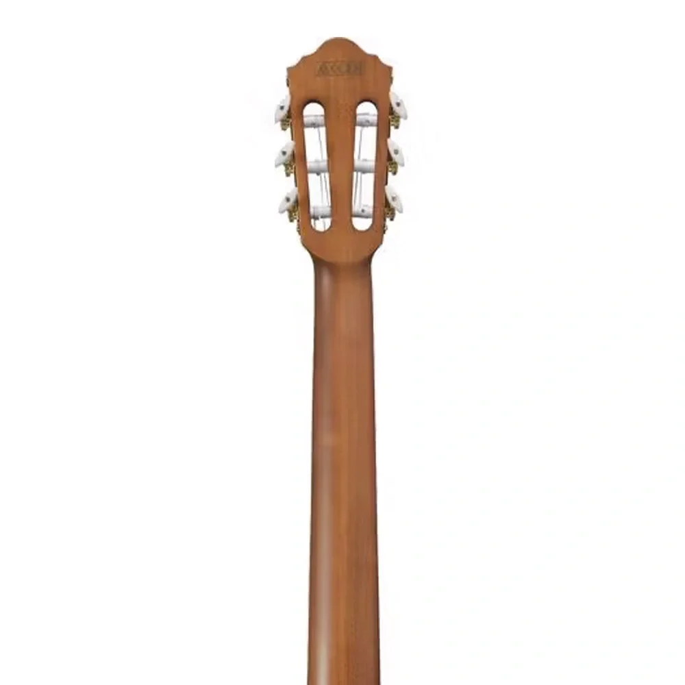 Brown Sunburst Flat kaplama, klasik ve modern tasarım çizgilerini zarif bir şekilde bir araya getirir. Açık oyuklu klasik headstock tasarımı, elektrik gitar estetiğiyle harmanlanarak dikkat çekici bir görsel sunum oluşturur. Altın renkli burgular ve mat yüzey detayı, bu nylon telli elektro klasik gitarı hem sahnede hem stüdyoda öne çıkaran unsurlar arasındadır.