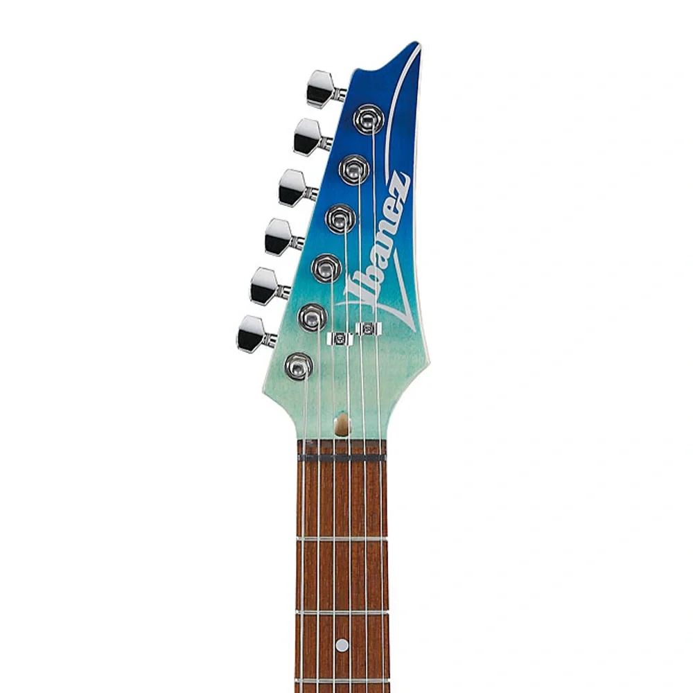 TEKNİK ÖZELLİKLER GÖVDE Gövde Malzemesi Okoume Üst Kapak Alevli Akçaağaç Gövde Şekli Modern Strat Bağaj Beyaz Gövde Cilası Parlak (Gloss Polyurethane) SAP Sap Akçaağaç Sap Profili SA Sap Cilası Saten Sap Yapısı Vidalı Bağlantı Skala 25.5" / 648 mm Klavye Jatoba Klavye Yarıçapı 12" Klavye İnlemleri Nokta (Dot) Perde Sayısı 22 Perde Tipi Orta (Medium) Perde Malzemesi Nikel Gümüş Üst Eşik Plastik, 42 mm AKSAMLAR Köprü Ibanez T102 Tremolo Donanım Rengi Krom ELEKTRONİK Manyetik Konfigürasyonu H-S-S Sap Manyetiği Ibanez Resolution Single Orta Manyetik Ibanez Resolution Single Köprü Manyetiği Ibanez Quantum H Manyetik Tipi Pasif Kontroller 1x Volume, 1x Tone Manyetik Seçici 5 Yollu Anahtar DİĞER Menşei Çin Tel Sayısı 6 Fabrika Çıkışlı Tel Kalınlığı .009 - .042 Aksesuar Alyan anahtarı Renk / Cila Blue Reef Gradation / Parlak Poliüretan