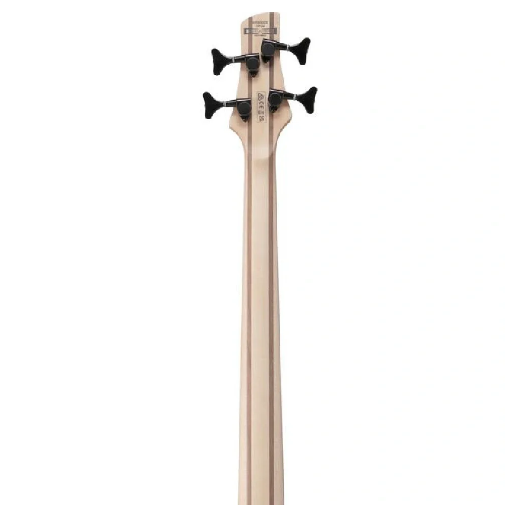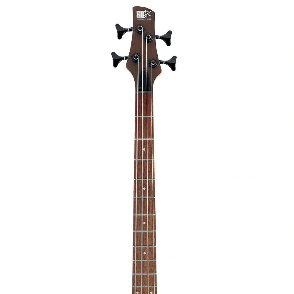Özellik Detay Gövde malzemesi Nyatoh Gövde şekli Standart SR serisi (double-cutaway) Gövde finişi Parlak poliüretan – Walnut Flat Sap türü 5 parça Maple/Walnut; SR4 profili, bolt-on Sap tasarımı Satin poliüretan kaplama Skala uzunluğu 34″ (864 mm) Klavye malzemesi Jatoba, beyaz nokta inlay'li Tel aralığı 19 mm Fret sayısı 24 adet, medium Sap genişliği 38 mm (nut), 62 mm (24. perde) Sap kalınlığı 19.5 mm (1. perde), 21.5 mm (12. perde) Radius 305 mm (yaklaşık 12″) Köprü tipi Accu-cast B120, geniş tel yuvaları Donanım rengi Siyah Burgular Ibanez die-cast tuners Üst eşik (Nut) Plastik, 38 mm Manyetikler 2 × Ibanez PowerSpan Dual Coil (pasif humbucker) EQ sistemi Ibanez Custom 3-band aktif EQ (bass/mid/treble) Power Tap 3 konum: Neck-tap / Series (humbucking) / Bridge-tap Pil 9V (aktif preamp için) Fabrika akordu G–D–A–E (standart bas akordu) Tel seti D’Addario EXL165 (.045/.065/.085/.105)
