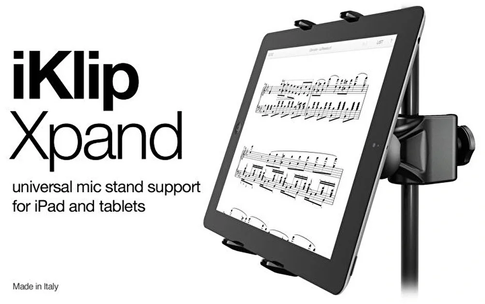 Her müzisyenin kabusu; sahnedesiniz ve performansınızı sergilerken, kullandığınız tablet yere düşüp ekranı milyonlarca küçük cam parçacığına dönüşüyor! Kalp krizi geçirmek için yeterli bir nedene benziyor. IK Multimedia’nın en son ürünü olan iKlip Xpand ile korkularınıza veda edin. Bu ayarlanabilir tablet tutacağı ile her boyuttaki cihazınızı güvenli ve sağlam bir şekilde kullanabilirsiniz. "Gorilla Grip” teknolojisi ile tabletinizi mikrofon standına monte edebilir, her yöne hareket edebilen dirsek parçası ile her zaman size uygun okuma açısını yakalayabilirsiniz.