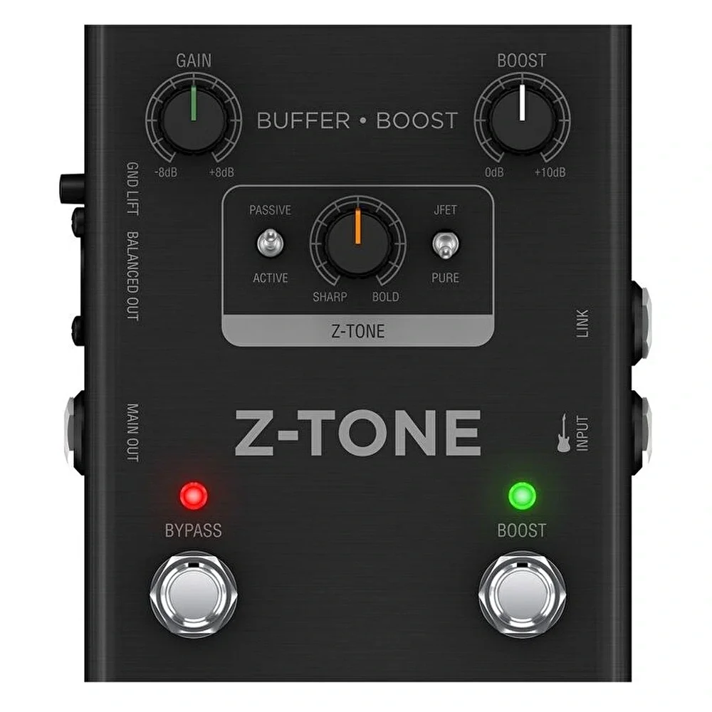 Z-TONE Buffer Boost, son derece düşük gürültü ve geniş frekans tepkisi ile yüksek kaliteli bir enstrüman ön amfisi ve her tür gitar ve stile uyum sağlamak için çoklu devre topolojileri sunar.