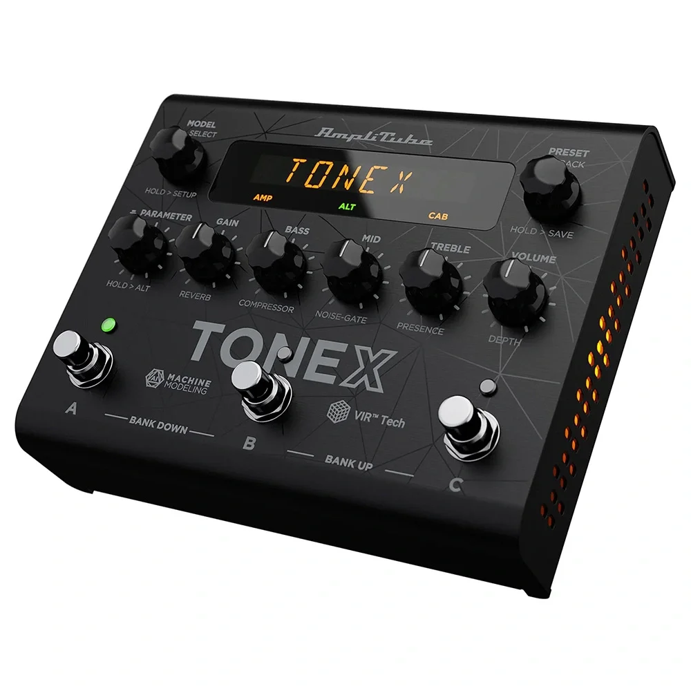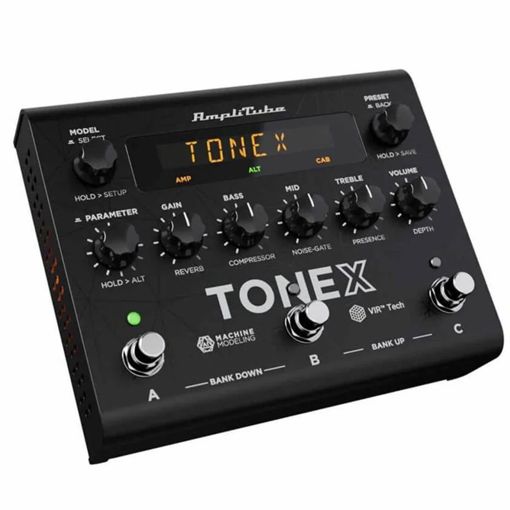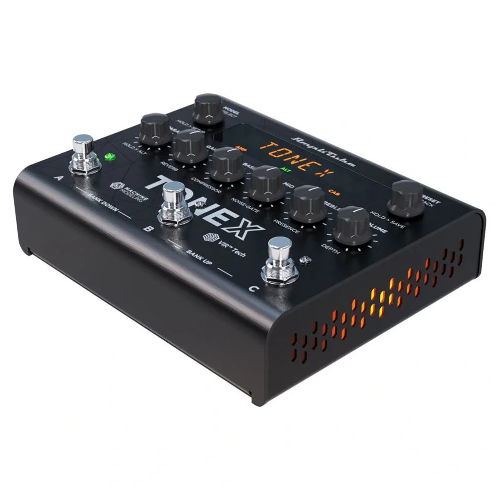 GENEL ÖZELLİKLER Pedal TipiUSB Arabirimli Amp Modelleme Profili Oluşturucu Analog / DijitalDijitalPresetler150 Preset (50 banka x 3 Slot)Girişler1x1 / 4"Çıkışlar 2x1 / 4" (L / R) Özellikler 24-bit/44.1 kHz Ses Arabirimi Yazılım AmpliTube, TONEX MAX player/librarian Güç Kullanımı: 320mA Güç Kaynağı 9 V DC güç kablosu (dahil) Yükseklik 2.16" (5,48 cm) Genişlik 6.92" (17,57 cm) Derinlik 5.59" (14,19 cm) Ağırlık 2 lbs (0.90 kg)