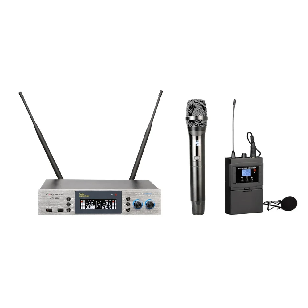 K.Meister UW-202HH Çift Yaka + Çift Headset Kablosuz Mikrofon Seti | 2x380 Kanal | Anti-Feedback