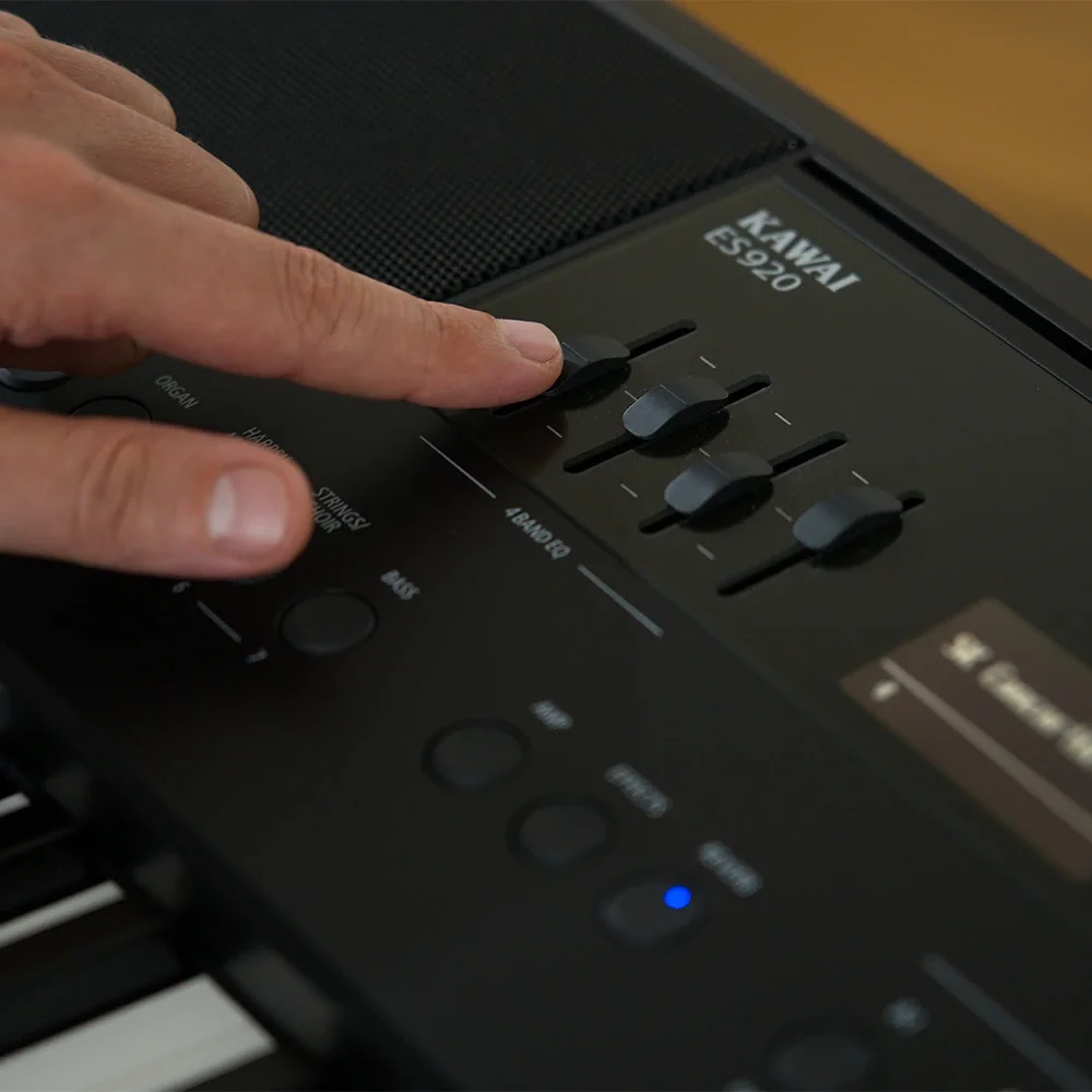 Kawai ES920, taşınabilir bir piyanodan alınabilecek en iyi çalım deneyimini sağlamak üzere tasarlanmıştır. Gerçekçi tuş mekanizması ve ilham verici sesleriyle her seviyede müzisyene hitap eden ES920, kolayca taşınabilmesi ve az yer kaplıyor olmasıyla da ön plana çıkıyor.
