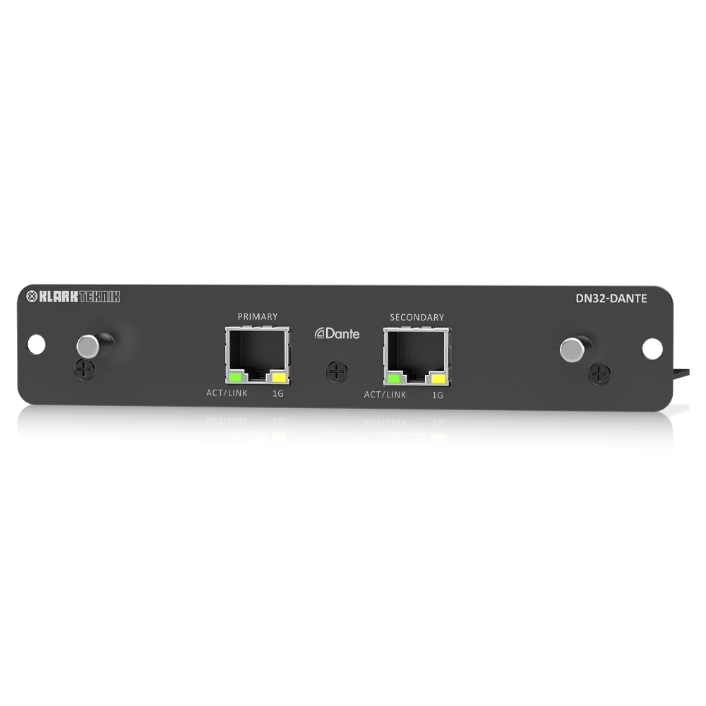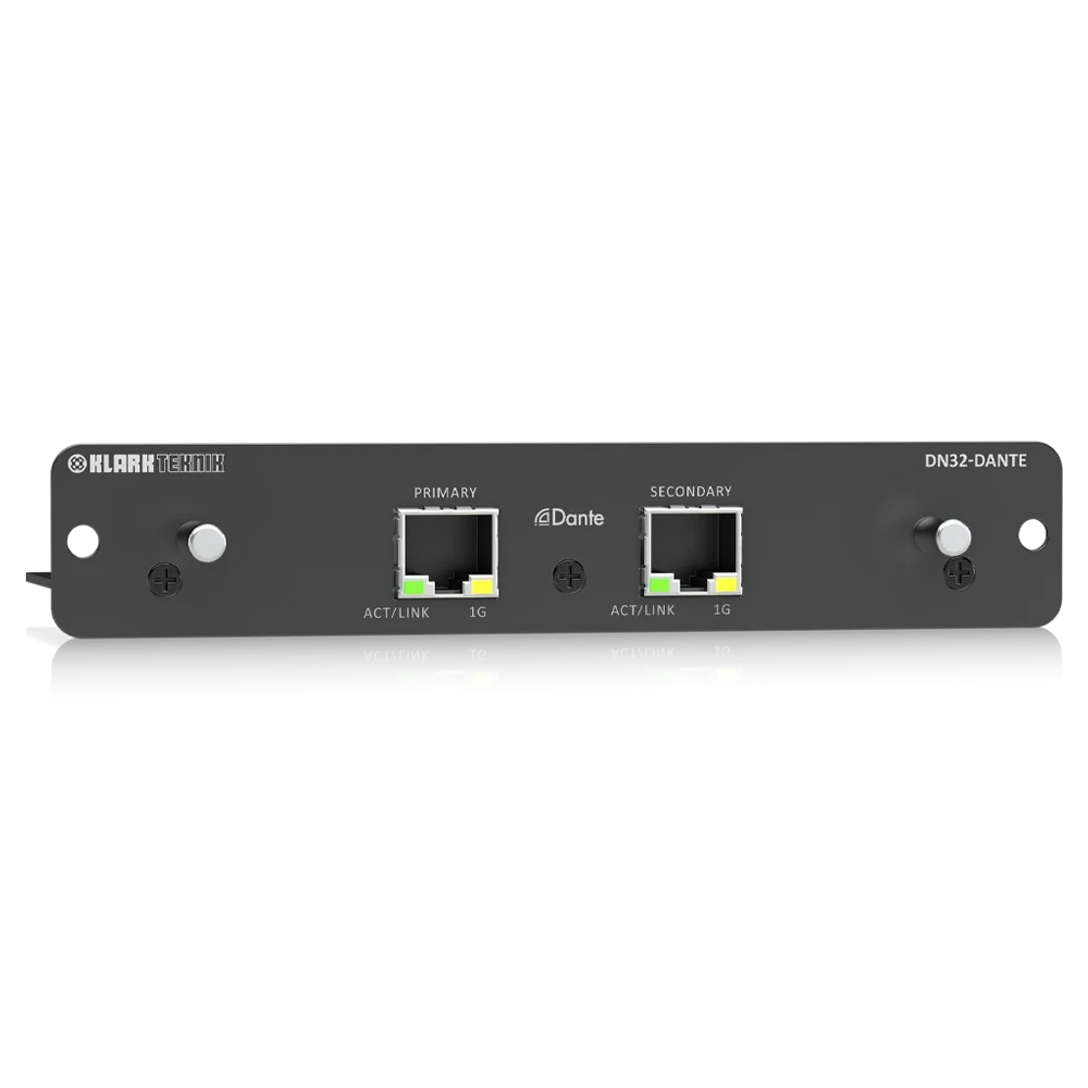 DN32-DANTE genişleme kartı, Midas M32 veya Behringer X32 mikserlerinize Dante uyumlu IP ağlarla entegrasyon için 32 adet iki yönlü kanal sağlar. Dante, bilgi teknolojisi standartlarına dayanarak gecikmesi düşük ve senkronize, sıkıştırmasız çok kanallı dijital medya aktarımı sunar. Mevcut IP ağ altyapısı üzerinden esnek uyumluluk sağlaması sayesinde, birçok profesyonel ses ekipmanı üreticisi tarafından benimsenmiştir.