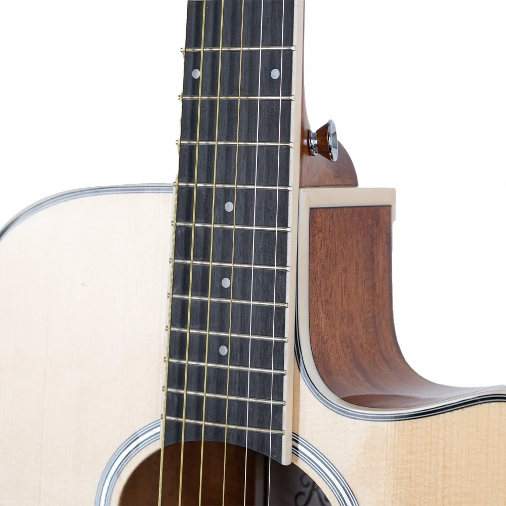Ladin ön kapak ve maun yan ve arka ağaç kombinasyonu, sıcak, dengeli ve rezonanslı bir ses sunar. Hem parmakla çalım hem de pena ile çalım için uygundur.