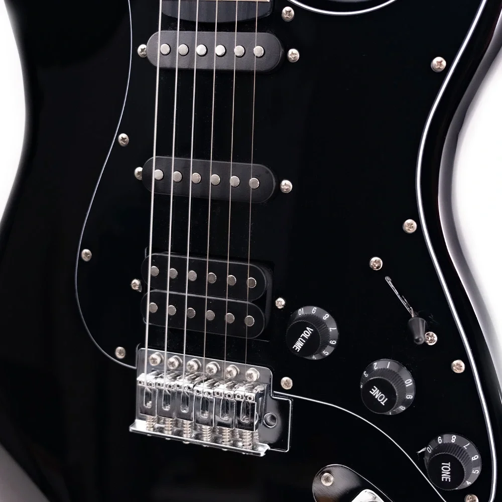 KOZMOS KGP-202HSS-BK elektro gitar, masif ıhlamur ağacı gövdesi ve Kanada akçaağaç sapıyla dayanıklılık ve konforu bir araya getiriyor. HSS manyetik sistemi ve 5 yollu switch sayesinde geniş ton seçenekleri sunan bu gitar, rock, blues, pop ve daha pek çok tarzda kullanıma uygundur. Parlak siyah yüzeyiyle hem estetik hem de profesyonel bir duruş sergiler.
