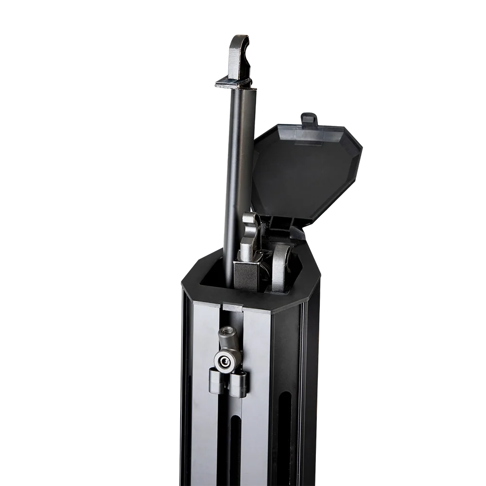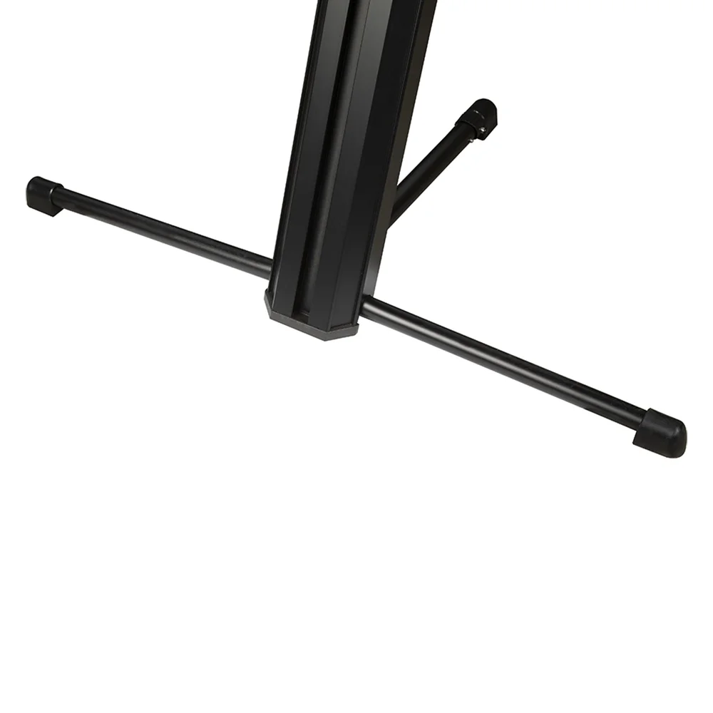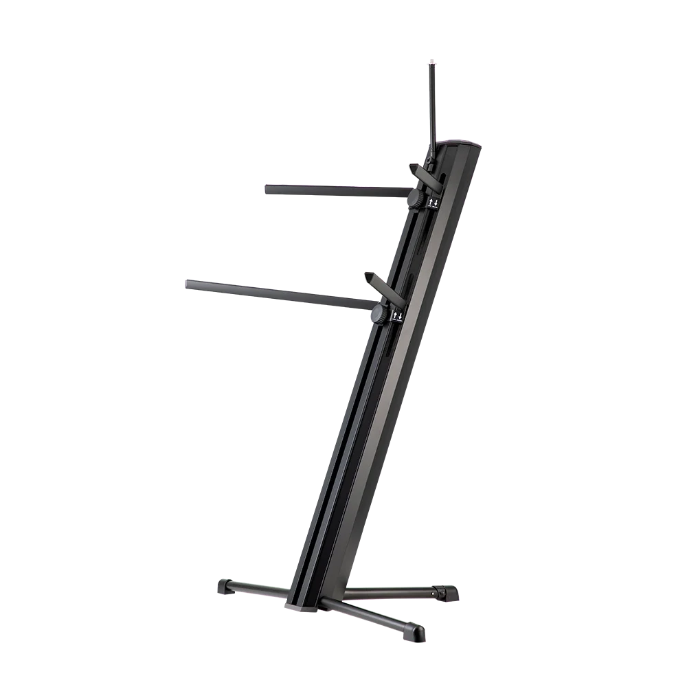 KS-102 klavye standı; geleneksel X stand tiplerinin aksine açılı duruşu ile çok daha rahat kullanımlı, klavyelerinizi karanlık sahnelerde daha rahat görebileceğiniz yapıyı sunmaktadır. Profesyonel klavye çalıcılarının talepleri doğrultusunda tasarlanmış olan KS-102 pratik yapısı ve esnek tasarımıyla profesyonel seviyede sahne standlarındandır. Turnelerin zorlu yol şartlarına daima hazır olan bu stand, iki klavyenizi ayna anda yerleştirebileceğiniz şekilde 2-Katlı olarak tasarlanmıştır. Üst katında 20 kg. ve alt katında 40 kg yükleme kapasitesiyle birçok dijital piyano ve klavye modelini sağlamca performanslarınız anında taşıyabilmektedir. Aliminyum yapısıyla gövde büyüklüğüne göre çok daha hafif olan KS-102, ister şehir içi işlerinizde ister turne şartlarında kolayca taşıyabileceğiniz ağırlıktadır. Dahilindeki kablo gizleme kanalıyla performanslarınızda kablo kirliliğini ortadan kaldırabilirsiniz. Katlanarak gövde içerisine yarleştirilen kolları ve ayaklarıyla, kolayca standınızı toplayıp, tekrar yola çıkmaya hazır hale gelebilirsiniz.