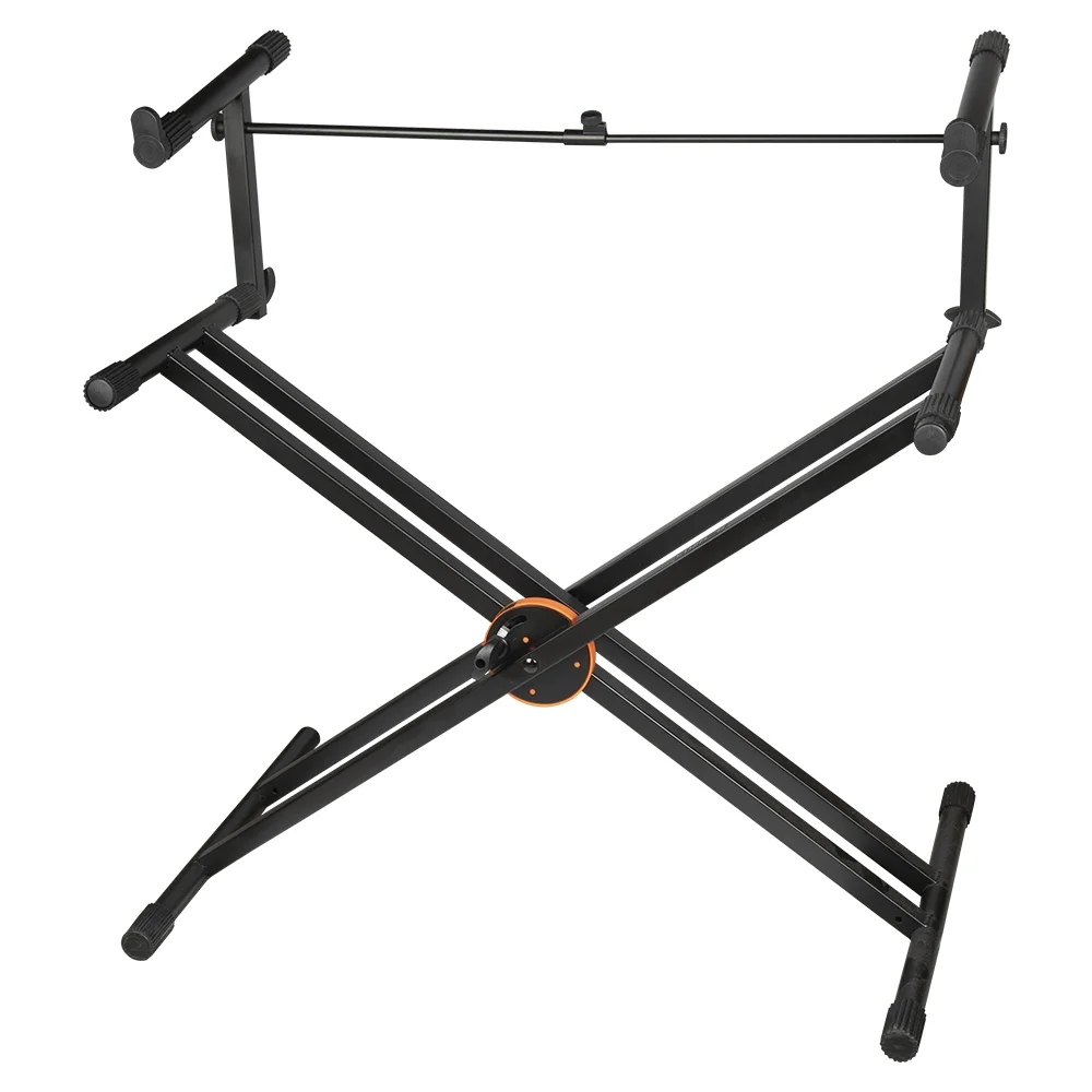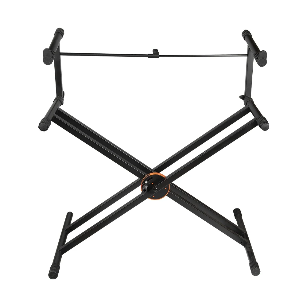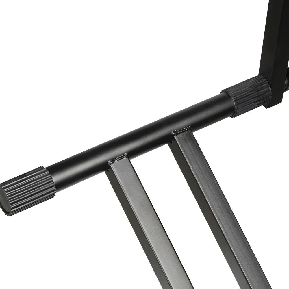 Çift X bacak sistemiyle, tamamı çelik yapısıyla sağlam ve dayanıklıAuto-Lok sistemiyle kolayca ve özgürce ayarlanabilen yükseklik ayarıSağ ve sol tarafa yatış açısı, iki kolu arasındaki genişliği ayarlanabilen ikinci katKollarında kauçuk altlıklar ile klavyelerin kayması engellenir.Kauçuk altlıklar ile her klavye boyutuna kolayca ayarlanabilir.Ayak bölümündeki kauçuk altlıklar ile yerde kaymaz.7 Kg ağırlığı ile her yere kolayca taşıyabilirsiniz.60 Kg. taşıma kapasitesiyle birçok klavye ve sahne piyanonuzu rahatlıkla kullanabilirsiniz.