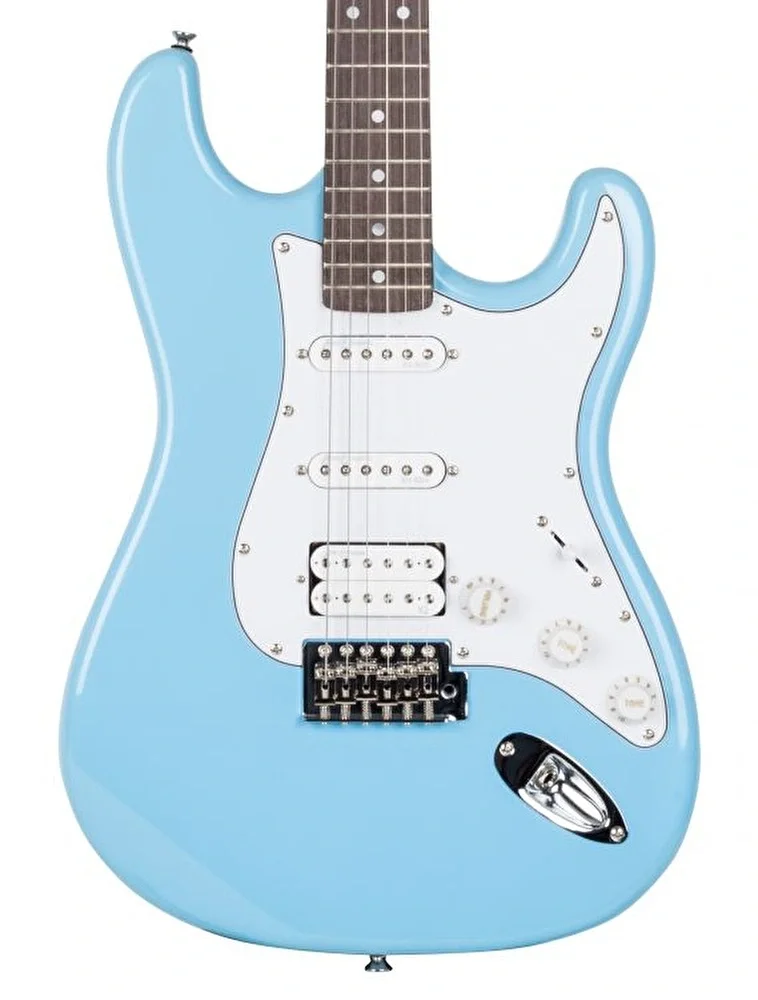 TEKNİK ÖZELLİKLER Scale :648 mmGövde :Masif Ihlamur AğacıSap Ağacı :Özel Seçilmiş Kanada AkçaağaçTruss Rod :2 Yönlü Sap ÇeliğiKlavye Ağacı :Endüstriyel Gül AğacıFret :NikelFret Sayısı :21Pozisyon Belirteçleri :Siyah NoktalıAkort Burguları :Die-Cast Vintage KromÜst Eşik :Sentetik KemikÜst Eşik Genişliği :42 mmKöprü :Vintage Stilde KromManyetikler :Entwistle X3 Humbucker + Entwistle AS57 / 2-Single Manyetik Konfigürasyonu :H-S-SKontroller :1 Volume, 2 Tone, 5 Yollu SwitchPickguard :Beyaz, Tek ParçaRenk :Defne MavisiCila :Parlak Yüzey
