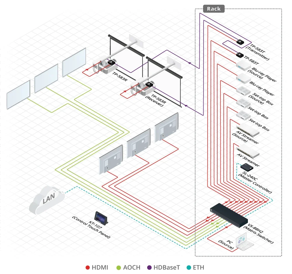 - Her türlü AV sunum sisteminde merkezi matris yönlendirme