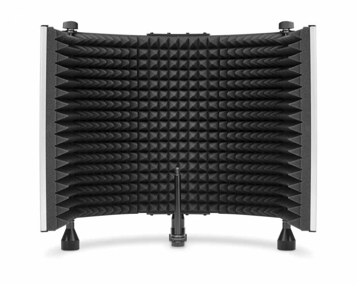 Sound Shield Her Türlü Stüdyo Alanında Kullanılabilecek İdeal Boyutlarda Bir Reflection Filtresidir. Mikrofonu Bozucu Akustik Yansımalardan Koruyarak Daha Net, Temiz ve Anlaşılabilir Bir Kayıt Almanızı Sağlar. Sound Shiled Üzerinde İkisi Sabit Üçü Katlanabilir Olmak Üzere Yüksek Yoğunluklu EVA Köpükten İmal Edilmiş Beş Adet Emici Duvara Sahiptir. Birçok Farklı Ortamda Dahi Mikrofonu Çepeçevre Saracak bir Şekilde Monte Edilebilir. Hafif ve Küçük Olan Sound Shield İster Masa Üstünde İster Mikrofon Ayağına Monte Edilerek Kullanılabilir.