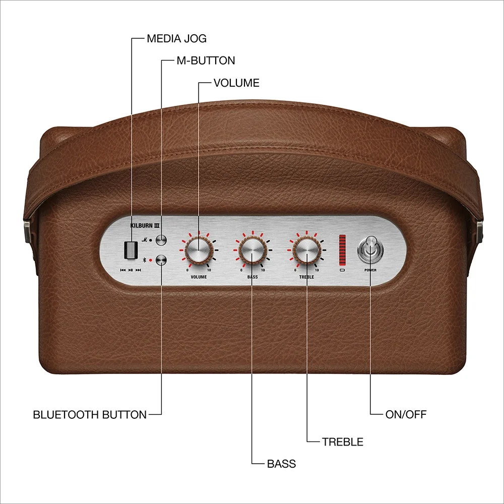 Marshall Kilburn III BT, hem evinizde hem de dış mekânda üstün ses performansı sunan taşınabilir bir Bluetooth hoparlördür.