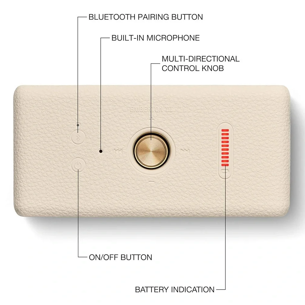 Marshall Emberton III, sıradan bir hoparlör değildir. Toza, suya ve darbelere karşı dayanıklı yapısı sayesinde onu dilediğiniz yere götürebilir, müzik keyfinizi özgürce yaşayabilirsiniz. İster sahilde, ister kamp alanında, ister arabanızın arka koltuğunda... Emberton III her an, her yerde müziğinizin yanında.