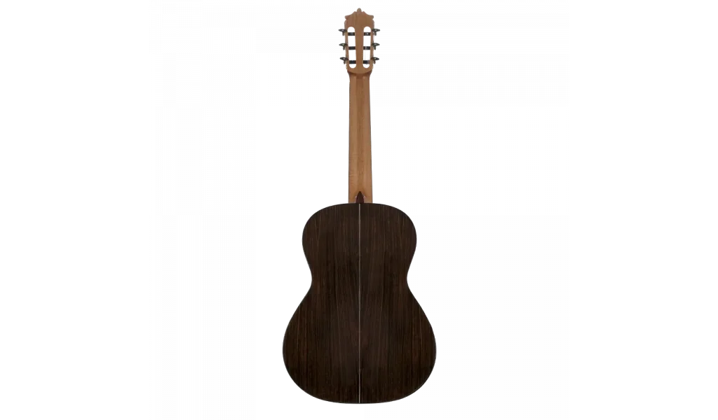 Geleneksel İspanyol Sap Bağlantısı: Gövde ve maun sapın birleştiği bu özel yöntem, titreşimi kayıpsız ileterek enstrümanın rezonansını en üst seviyeye taşır.