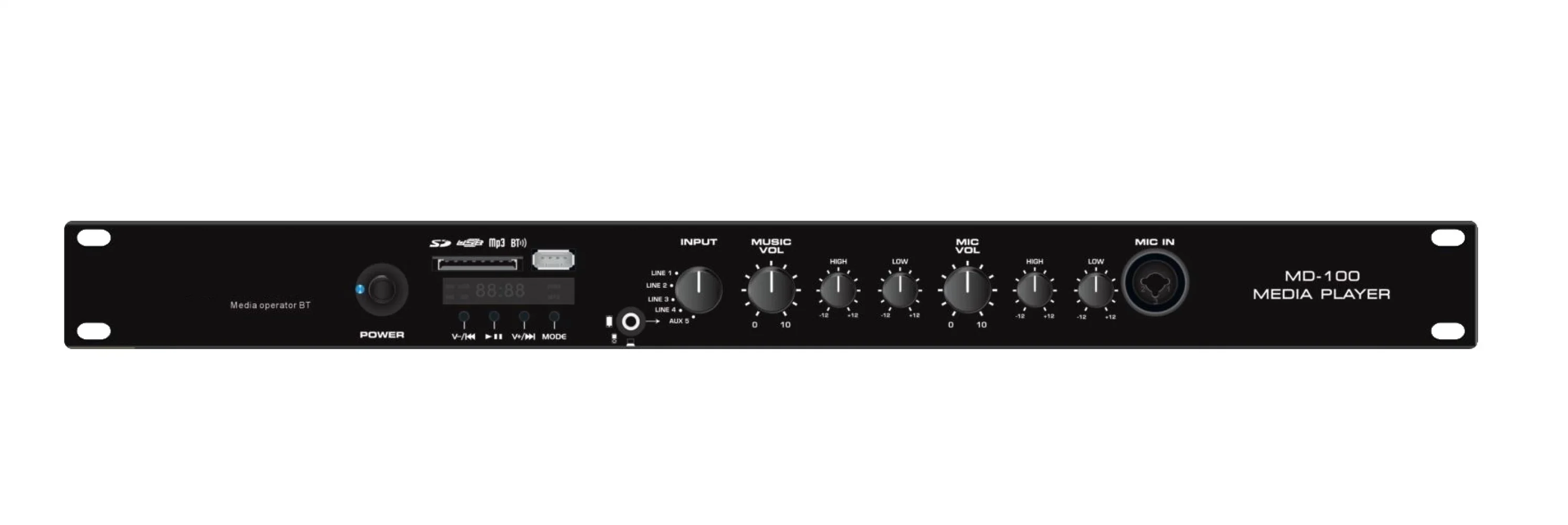 Fitness merkezleri, restoranlar, mağazalar veya alışveriş merkezleri gibi mekanlarda hızlı ve kolay kurulum için ideal bir MP3 / Bluetooth multimedya oynatıcıdır. SD kartların, USB anahtarlarının ve Bluetooth alımının dijital olarak okunmasına olanak tanır.