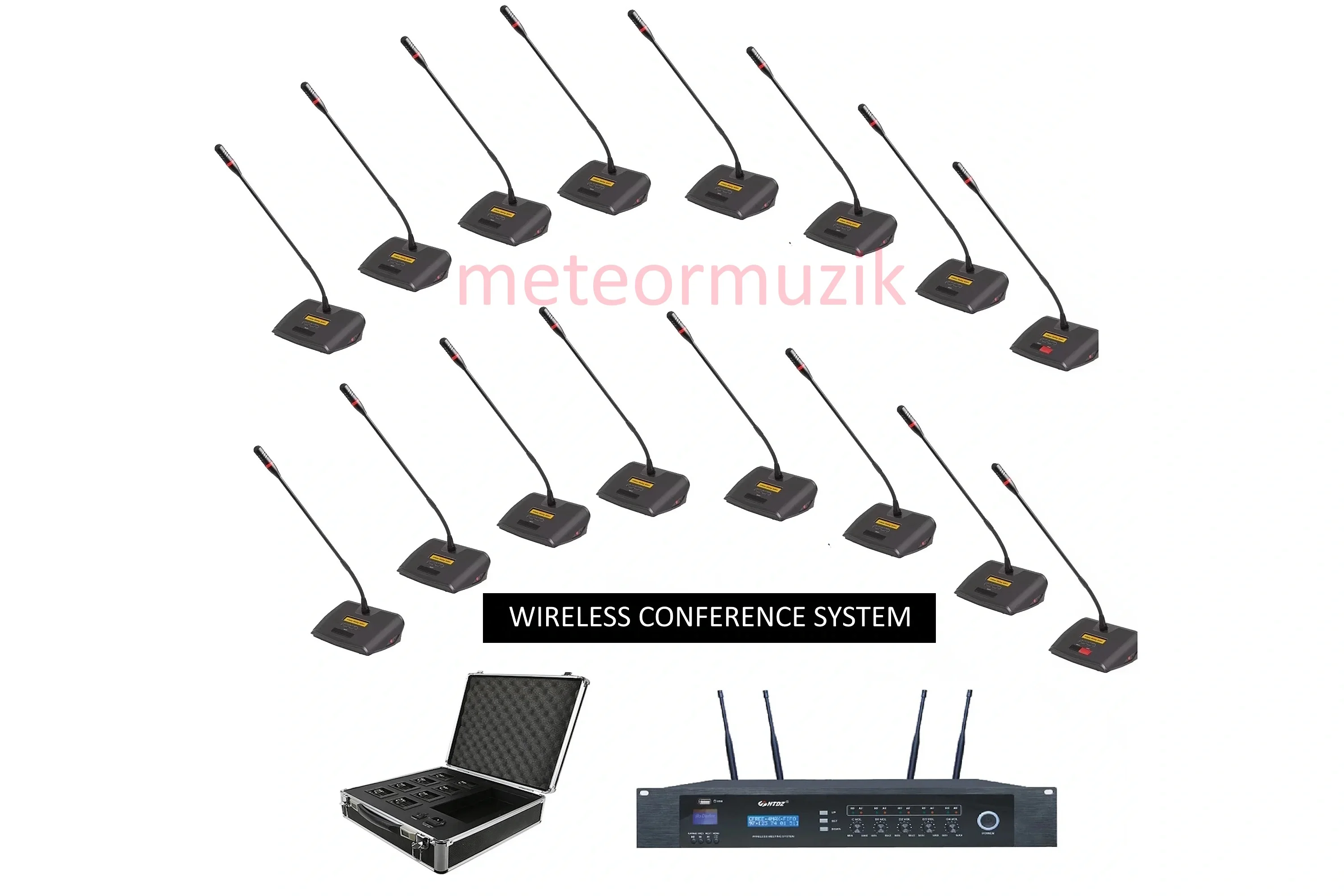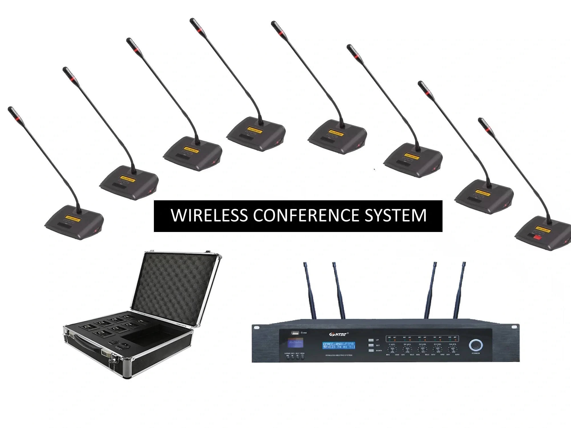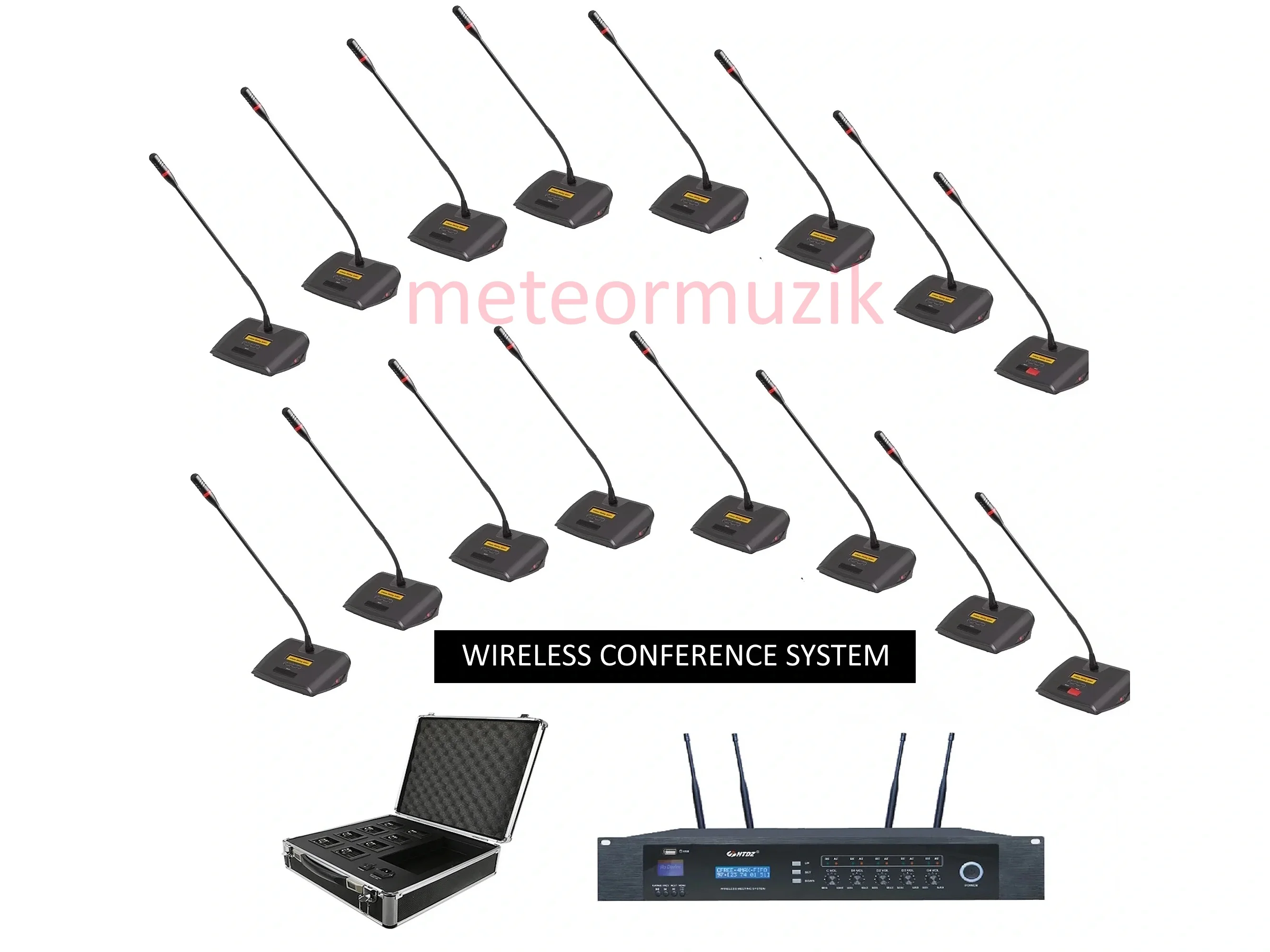 Kablosuz toplantı mikrofon sistemimiz, mobil konferans sistemleri için idealdir. Kompakt yapısı, basit kullanımı, yüksek esnekliği ve güvenilirliği ile öne çıkar. Bu konferans sistemi, herhangi bir toplantı odasında kablo döşemeye gerek olmadan kullanılabilir ve birden fazla cihaza bağlanabilir.