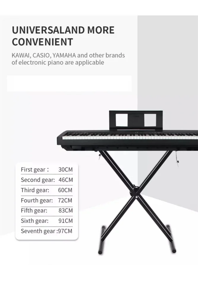 Üstündeki platikler sayesinde koyacağınız klavye standın üzerine sağlam bir şekilde oturur kaymaz veya kullanacağınız klavye uygunsa emniyet bağlantılarını vidalayarak orgu sabitleyebilirsiniz .