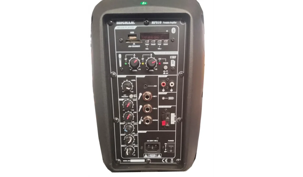 Mickle MP1012 2x10" Akülü Mobil Çift Hoparlörlü Ses Sistemi, Çift Mikrofon, 600/1200W 99 Dijital Efekt, Bluetooth