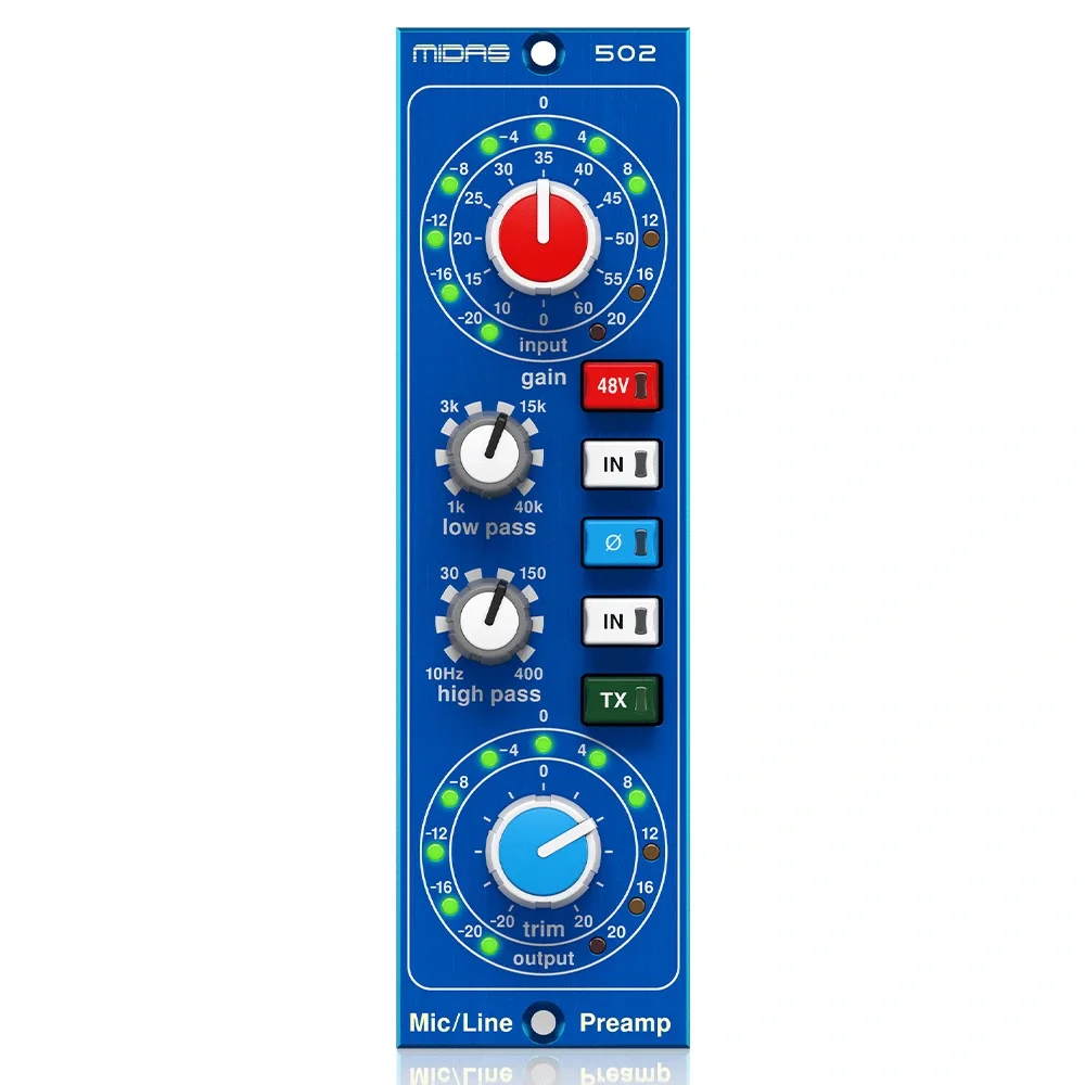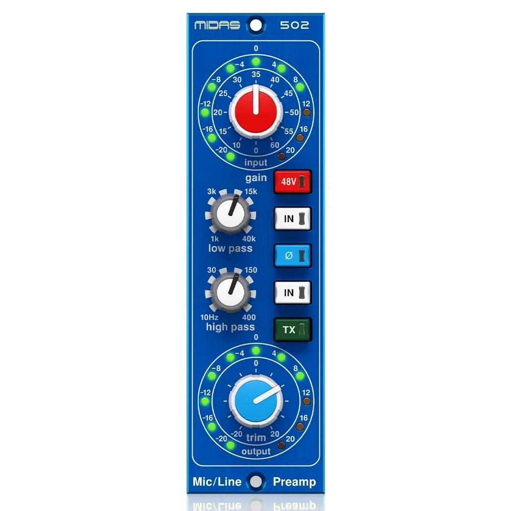 MICROPHONE PREAMPLIFIER 502, Midas’ın ses mühendisliği konusundaki kapsamlı deneyimini modern bir modüler platformda bir araya getirir. Stüdyo kayıtları, canlı performans, yayıncılık ve kurumsal ses sistemleri gibi çok yönlü uygulamalarda yüksek performans, düşük gürültü ve benzersiz ses karakteri sunarak profesyonel kullanıcıların beklentilerini karşılayan üst seviye bir preamfi çözümü sağlar.