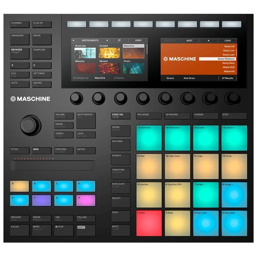 MASCHINE’in ultra-hızla, etiket bazlı tarayıcısı yaratıcılığınızın yavaşlamasına izin vermiyor. MASCHINE’in iki renkli görüntü ekranı ile 4 yönlü basılabilir encoder’ini kullanarak herhangi bir projeyi, grubu, sesi, entrümanı, efekti veya sample’yi hızlıca bulun ve yükleyin.