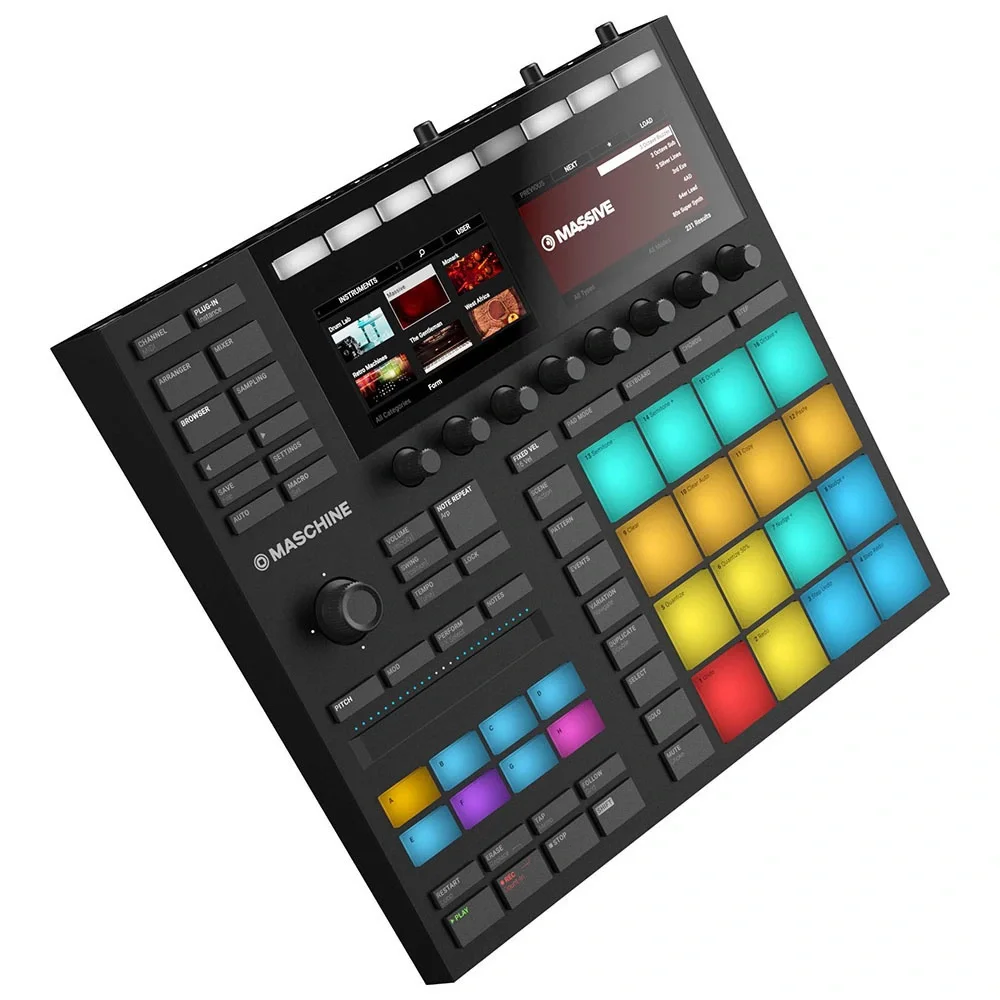 2 ekstra geniş, yüksek çözünürlüklü renkli ekranlar16 yüksek kalite, çok renkli, hız ve aftertouch özellikli, ışıklandırılmış pedler8 çok renkli grup tuşlar 8 döndürülebilir dokunmatik encoder50 aydınlatmalı tuş1 çift yönlü dokunmatik Smart Strip1 dört yönlü basılabilir encoder96 kHz / 24-bit dahili ses arayüzüUSB 2.0, 3.02 x ¼” TRS line çıkışları, 2 x ¼” TRS line girişleri¼” dinamik mikrofonla kullanmak için mikrofon girişi1 kulaklık çıkışı1 x MIDI girişi, 1 x MIDI çıkışı1 ayak pedalı veya pedal girişi USB Veri Yolu GücüDesteklenen arayüzler: Stand-alone, VST, Audio Units, AAX 32 ve AAX 64, ASIO, CoreAudio, WASAPILütfen dikkat: Native 64-bit desteği stand-alone ve plug-in sürümleri içindir.MASCHINE etkinleştirme gerektirir: Kutunun içindeki seri numarasını kullanarak etkinleştirebilirsiniz.Ekran sorunları durumunda,lütfen ekran kartınızın güncel sürücülerini yükleyiniz. Bu durum Windows’un sürücülerinizin güncel olduğunu belirtmesi durumunda da geçerlidir.MASCHINE yazılımı, MASCHINE Factory Library ve KOMPLETE 11 SELECT kayıt yapıldıktan sonra indirilebilirYazılımı indirmek ve etkinleştirmek için internet bağlantısı ve OpenGL 2.1 veya daha yenisini destekleyen ekran kartı gereklidir. Bir kez indirilip, etkinleştirildiğinde tüm ürünler çevrimdışı olarak kullanılabilir.Genişlik: 320 mm / 12.6"Uzunluk: 301 mm / 11.85"Yükselik: 41 mm / 1.61"Ağırlık: 2.2 kg / 4.85 lbsTEKNİK ÖZELLİKLER24756TipPad Kontroller ve Sequencer, SamplerEkran2 x Yüksek çözünürlüklü RGB renkli ekranPedler16 x ultra hassas pedlerDiğer Kontrolörler1 x Dokunmatik Şerit, 8 x dokunmaya duyarlı döner kodlayıcıSesler8 GB sample, one-shot, loop, enstrümanlar, desenler, bateri kitleri kitaplığıSequencerStep Sequencer, Realtime Recording SequencingLooper EvetSamplingEvetEfektlerFilter, Delay, Reverb, Compression, Tape Saturator, Frequency Shifter ve daha fazlasıAnalog Girişler2 x 1/4" (hat girişi), 1 x 1/4" (mikrofon girişi)Analog Çıkışlar2 x 1/4" (hat çıkışı)Kulaklıklar1 x 1/4"MIDI G/ÇGiriş/Çıkış/USBUSB1 x Tip BPedal Girişleri1 x 1/4" (pedal)BiçimVST, AU, AAX, Major DAW'sYazılımMachine 2.0, Komplete Select (indir)İşletim Sistemi Gereksinimleri - MacmacOS 10.12 veya üzeri, Intel Core i5 veya üzeri, minimum 4 GB RAMİşletim Sistemi Gereksinimleri - PCWindows 7 SP1 veya üstü, Intel Core i5 veya üstü, minimum 4 GB RAMGüç kaynağı15V DC güç kaynağı (ayrı satılır) / USB veri yolu gücüYükseklik1.61"Kalınlık12.6"Derinlik11.85"