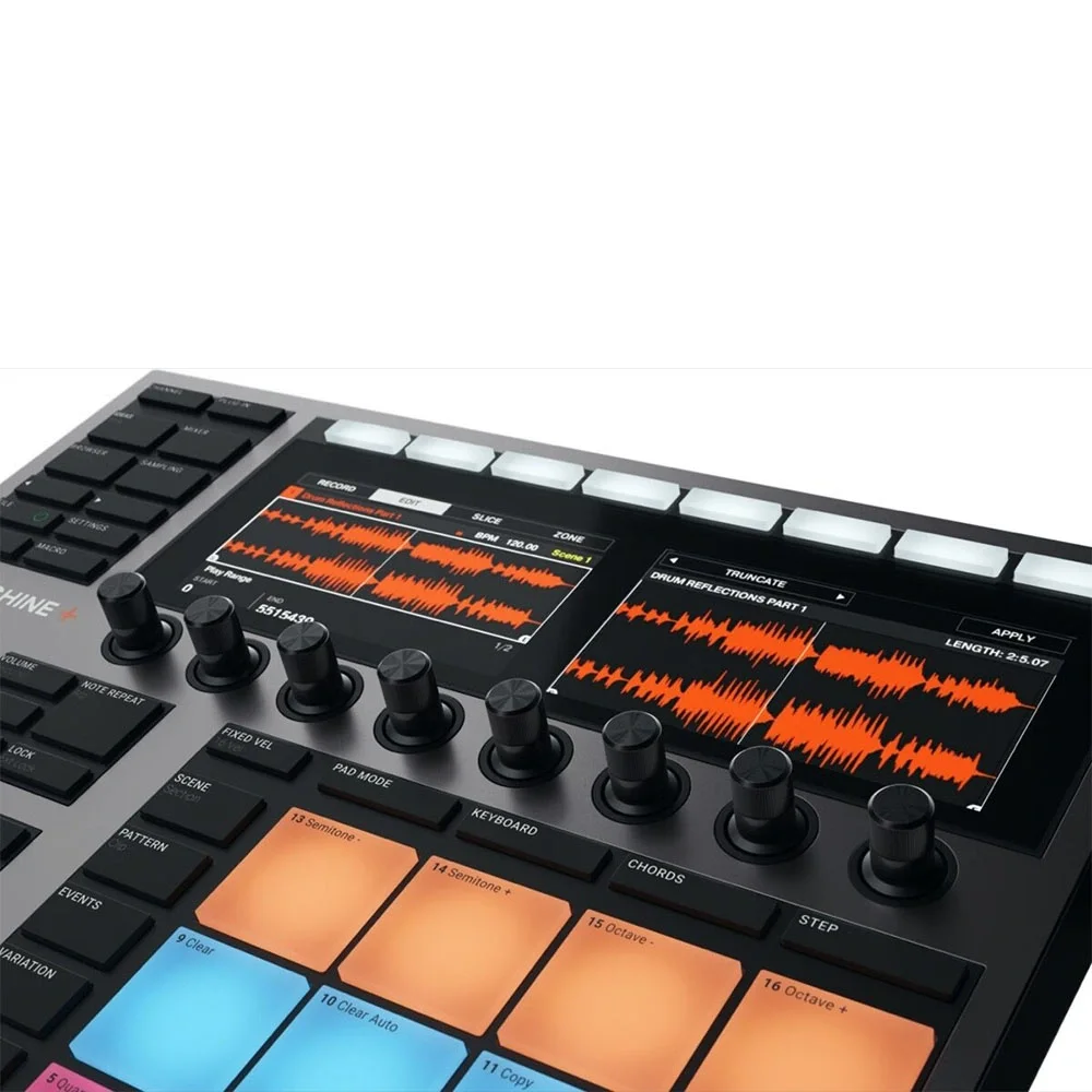 MASCHINE +, büyük, duyarlı pedleri, dokunmaya duyarlı düğmeleri ve Smart Strip şerit denetleyicisiyle kendinizi bir performansta kaybedin! Sağlam yapısıyla MASCHINE +, ciddi ölçüde enerjik canlı şovların üstesinden gelebilir. MASCHINE +, kutudan çıkarır çıkarmaz prodüksiyona başlamanızı sağlamak için 8 GB'ın üzerinde içerik ve 14 Native Instrument’in muhteşem enstrümanları ve efektlerinden oluşan bir seçki içerir! MASCHINE + ile, MASCHINE kullanıcılarının bildiği ve sevdiği mükemmel iş akışını bağımsız çalışma özgürlüğüyle elde edersiniz - bilgisayar gerekmez!