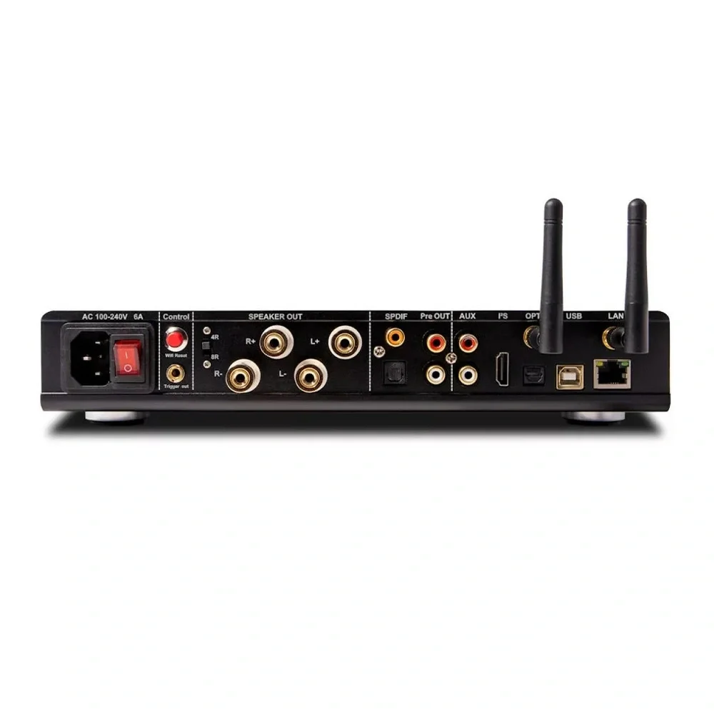 <%0,01 (OPT IN, 1W, @ 8 ve 4 ohm)Sinyal-Gürültü Oranı>95 dB (Dijital giriş, 10W çıkış @ 8 ohm)Kırpma Gücü>230W (1kHz @ 4 ohm, her iki kanal da çalıştırılır)Frekans Tepkisi+0,6 dB/-1dB (12 Hz – 22 kHz)Kanal Ayrımı >85dB (1 kHz AUX); >105 dB (10 kHz Dijital)Giriş Hassasiyeti100W @ 8 ohm için 0,85V (AUX ve OPT)