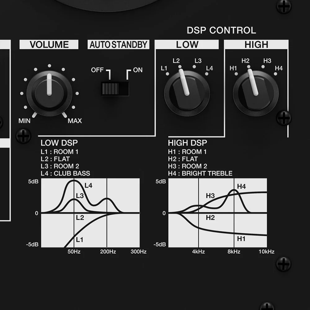 TEKNİK ÖZELLİKLERModelVM-50-WTipBi-amp 2-yollu aktif hoparlörAmplifikatörAmplifikatör tipiDSP’li Class DDüşük frekans amplifikatörü30 W (4 Ω)Yüksek frekans amplifikatörü30 W (4 Ω)Giriş konektörleri (dengeli giriş)XLR/TRS kombine x 1Giriş konektörleri (dengesiz giriş)RCA x 1Giriş empedansı10 kΩHoparlörKabinetBas refleksKabinet malzemesiMDF vinil laminatWoofer (düşük frekans sürücüsü)5.25" (133 mm) koniTweeter (yüksek frekans sürücüsü)1" (25 mm) yumuşak domeÇalma frekans aralığı40 Hz – 36 kHzAksesuarlarGüç kablosu, Yastıklı ayak pedleri, Kullanım kılavuzu, Kullanım önlemleri, GarantiGüç Birimi/DiğerDesteklenen voltajlarAC 110 V – 240 V, 50 Hz / 60 HzBekleme modunda güç tüketimi0.3 W veya daha azDış boyutlar (G × Y × D)198 x 300 x 265 mm / 7.80” x 11.81” x 10.43”Ağırlık5.5 kg / 12.1 lbs
