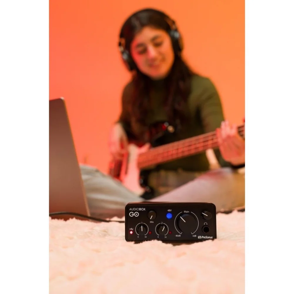 AudioBox GO ile dilediğiniz heryerde kayıt alabilirsiniz. Profesyonel XLR vokal mikrofonları, gitarlar, synthesizerler, kulaklıklar ve stüdyo referans monitörleri; aklınıza gelebilecek her türlü ekipmanı bağlama imkanınız mevcut. USB class-compliant özelliği sayesinde herhangi bir sürücü kurulumu gerektirmeden, bilgisayarınıza bağlar bağlamaz kullanmaya başlayabilirsiniz. En can alıcı detaylardan biri de beraberinde gelen Studio One 6 Artist Edition yazılımı ile hemen kayıt alıp müzik yapmaya başlayabilirsiniz.