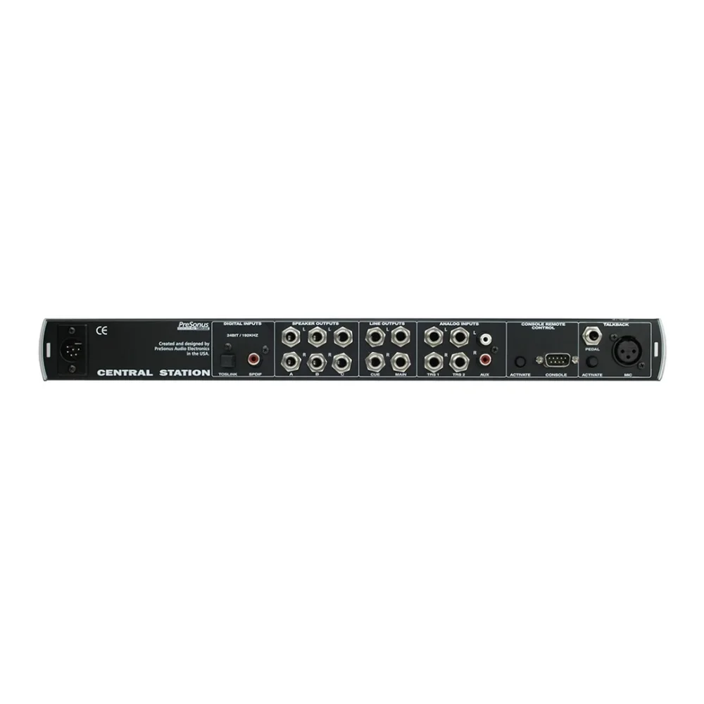 Central Station, dijital stüdyolara yönelik hazırlanmış, stüdyo monitoring sisteminizi kontrol etme kolaylığı sağlayan bir kontrol istasyon arabirimidir. Arka panelde bulunan 3 adet analog stereo girişin ikisi balanslı TRS, diğeri de RCA konektörlüdür. Analog girişlerin yanısıra, 24bit/192 kHz hassasiyette, S/PDIF ve TOSLINK girişler de mevcuttur. Output Section'da, A, B ve C şeklinde seçebileceğiniz 3 adet stereo çıkış ile kulaklık amfilerine gönderme yapabileceğiniz CUE çıkışının yanısıra, MAIN LINE çıkışı da bulunmaktadır.